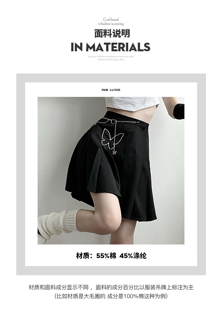 【送料無料】 pinksavior蝶刺?夏コロケーションブラックスリムプリーツスカート 刺繍 サマー 夏物 PSTB62738093755