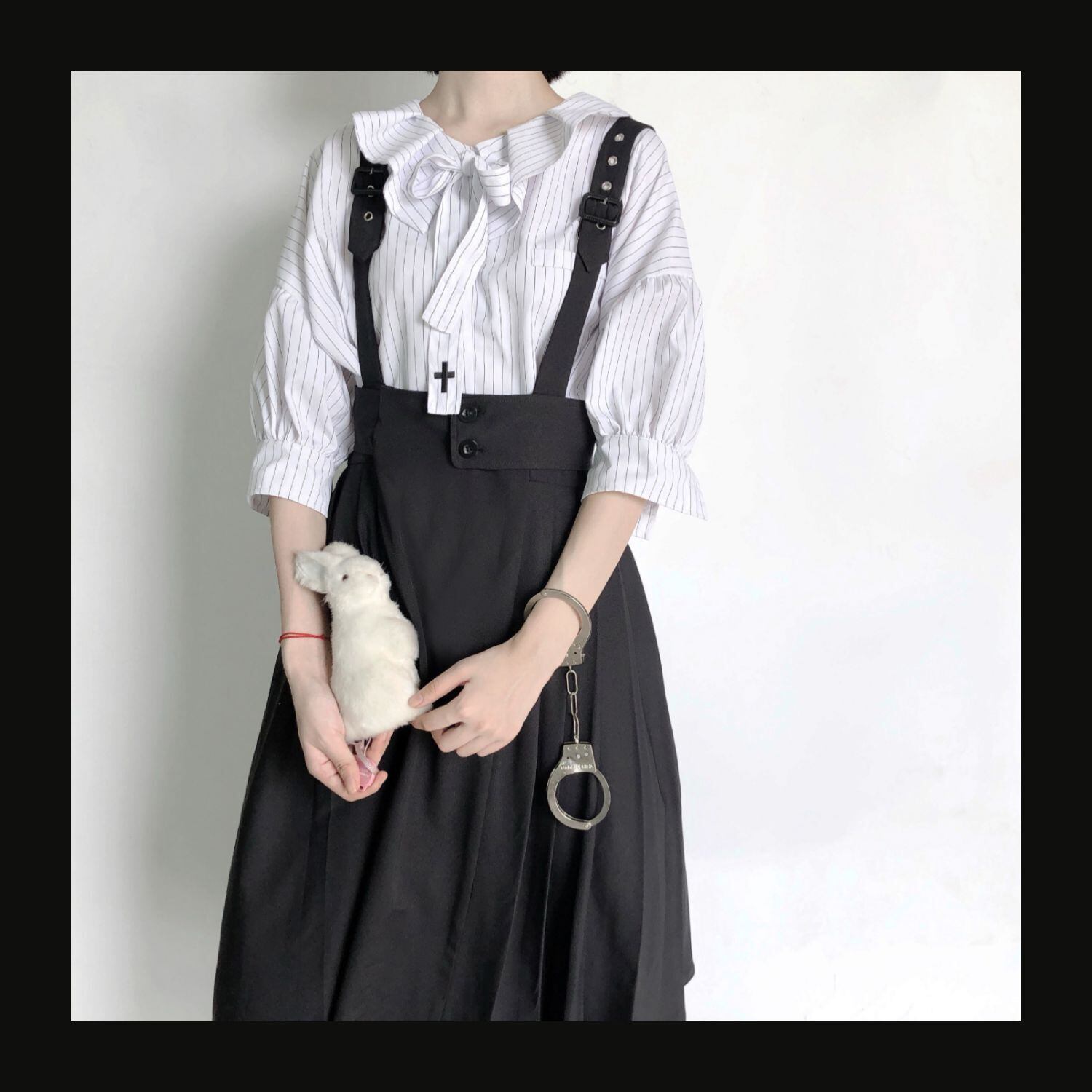 pinksaviorムーンライト黒と白のストライプ長袖半袖シャツハーフスカートガールフレンドセット(名前の手紙を送る ショート ロング ホワイト ブラック ハーフスリーブ PSTB89205114233