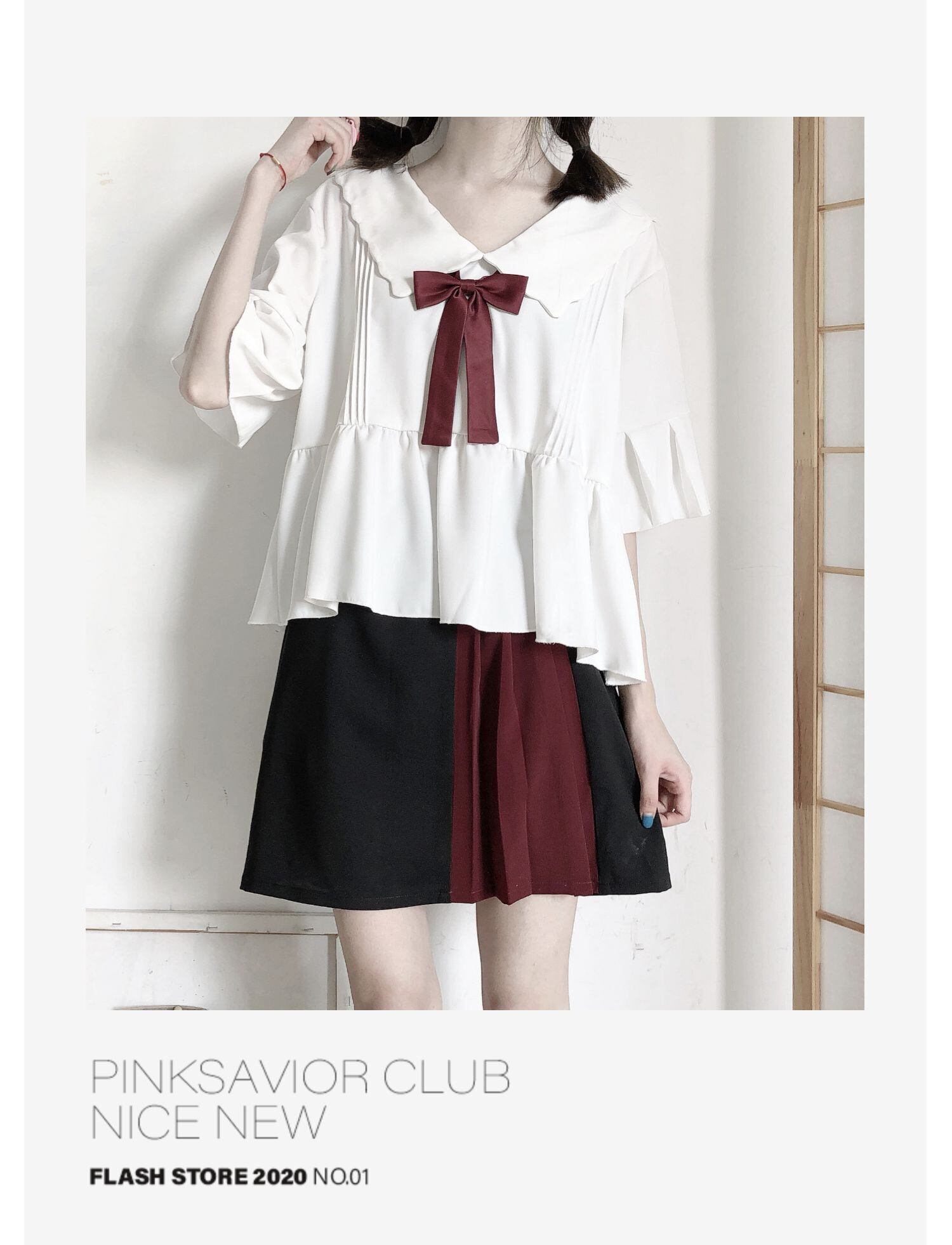 色:ブラックベストスカート(S先行販売),ブルーベストスカート,黒スカート,青いスカート,白いレースの襟のシャツ(無料のシアンの弓),ホワイト斜め前立てネクタイシャツ先行販売,ホワイトレースカラーシャツ(無料ワインレッドボウ)