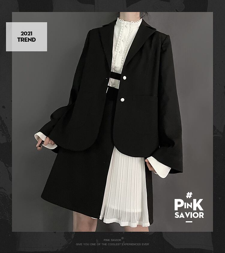 【送料無料】 pinksavior【春里暁也】ネクタイスーツ+レースシャツ+ミドル丈ステッチハーフスカートデザインスーツ ピンク PSTB90388378692