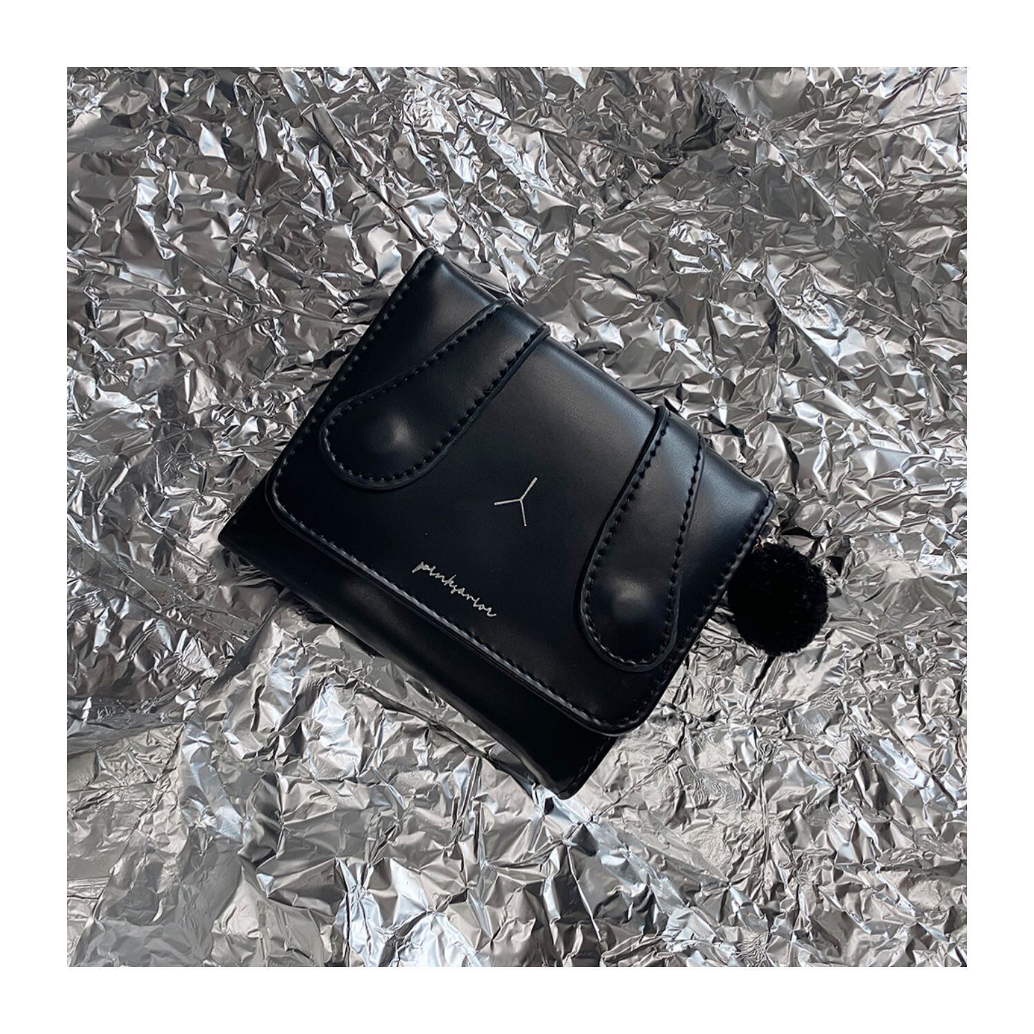 【送料無料】 pinksaviorは、BLACK AND WHITEのウサギの耳の毛玉の三つ折り財布の耳を開くことができます(在庫あり ホワイト ブラック PSTB55725851180