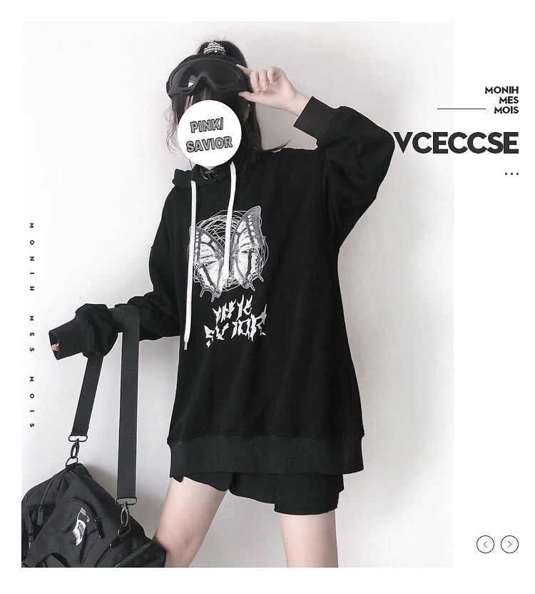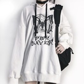 【送料無料】 pinksaviorBLACK AND WHITEの落書きフード付きルーズカジュアルバタフライダークプリントセーター ホワイト ブラック PSTB71585726652