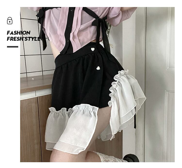 【送料無料】 pinksavior [Xiaoxinghe]白いレースのステッチのラブバックルは薄くてドレープな夏のショートスカートパンツ ピンク ホワイト サマー 夏物 PSTB10780659630