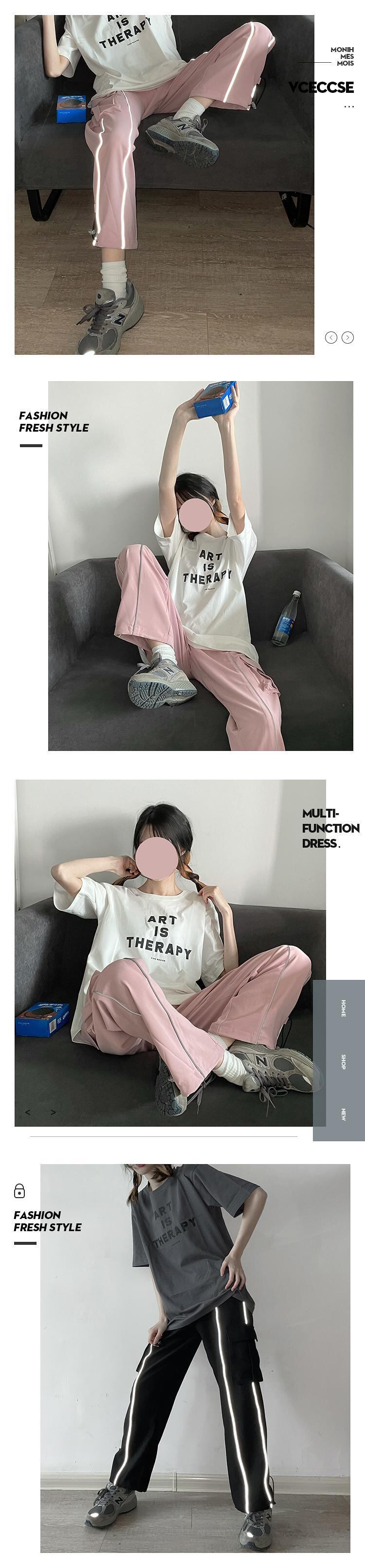 【送料無料】 pinksavior3色反射デコレーションストリートカジュアルドレープ伸縮性ウエストパンツ エラスティック PSTB5029030701