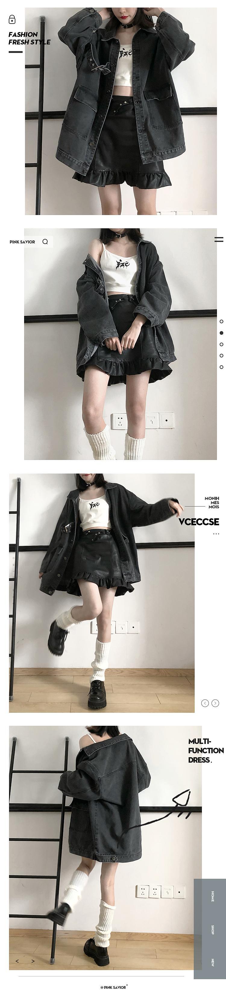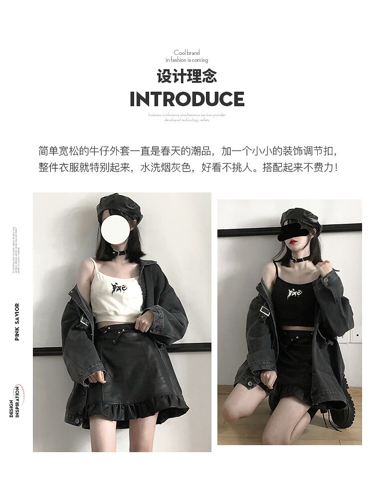 pinksavior【春の解禁】ウォッシュドスモーキーグレーの薄くてルーズなデニムジャケットで飾られた調節可能なベルト ピンク スプリング 春物 アジャスタブル ハーネス PSTB45816324902