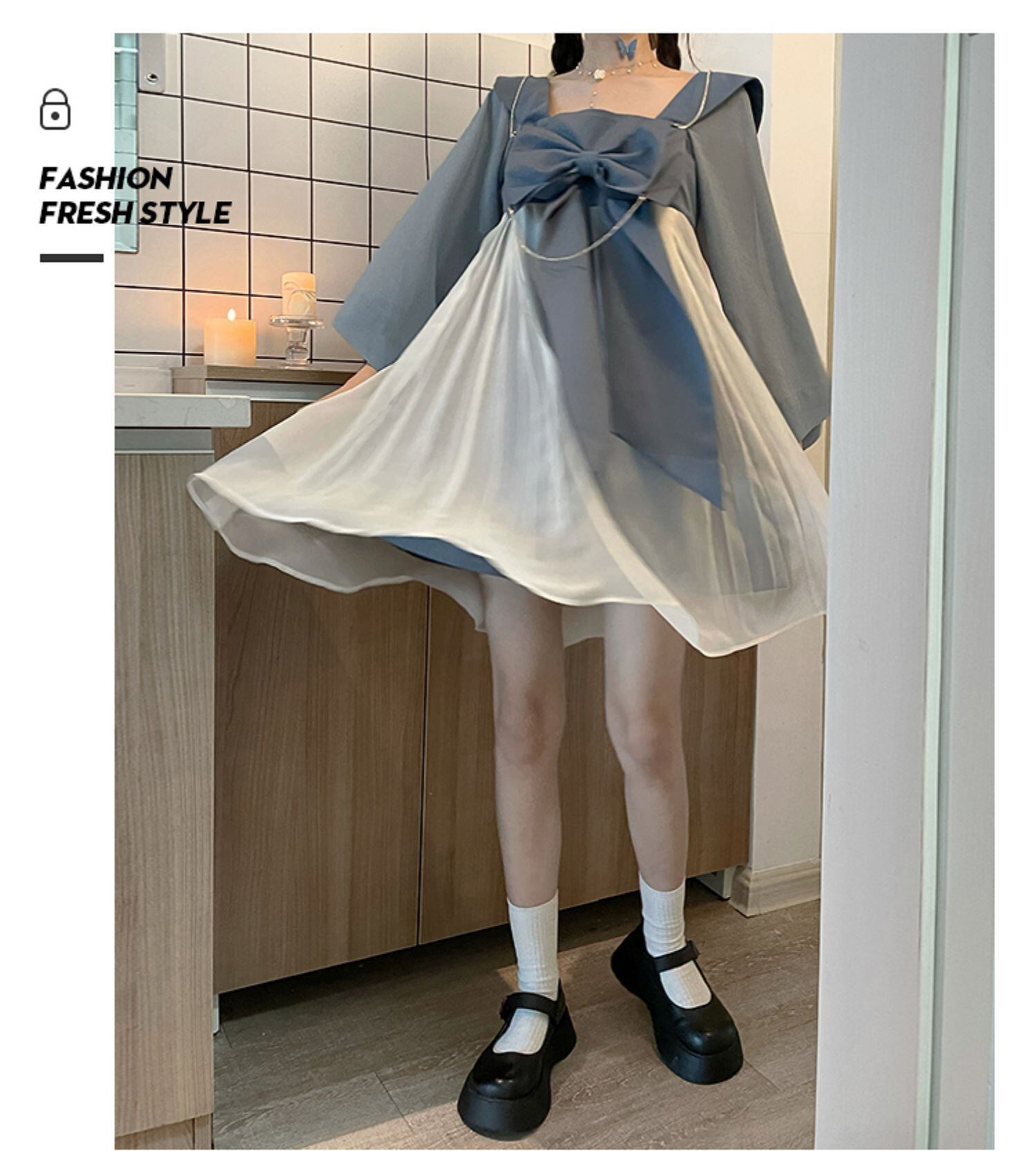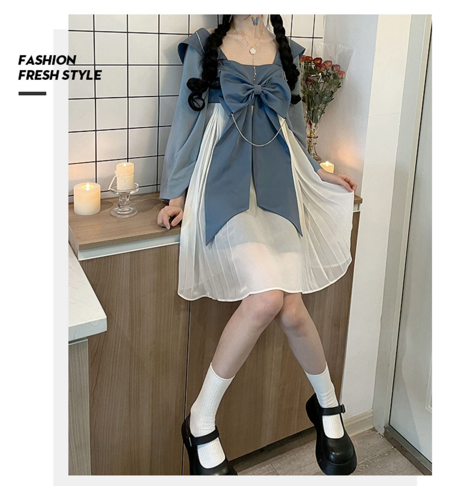 色:大きな弓と青と白のドレス,大きな弓と赤と黒のドレス,中国のカーディガンの赤と黒のドレス,中国のカーディガンの青と黒のドレス