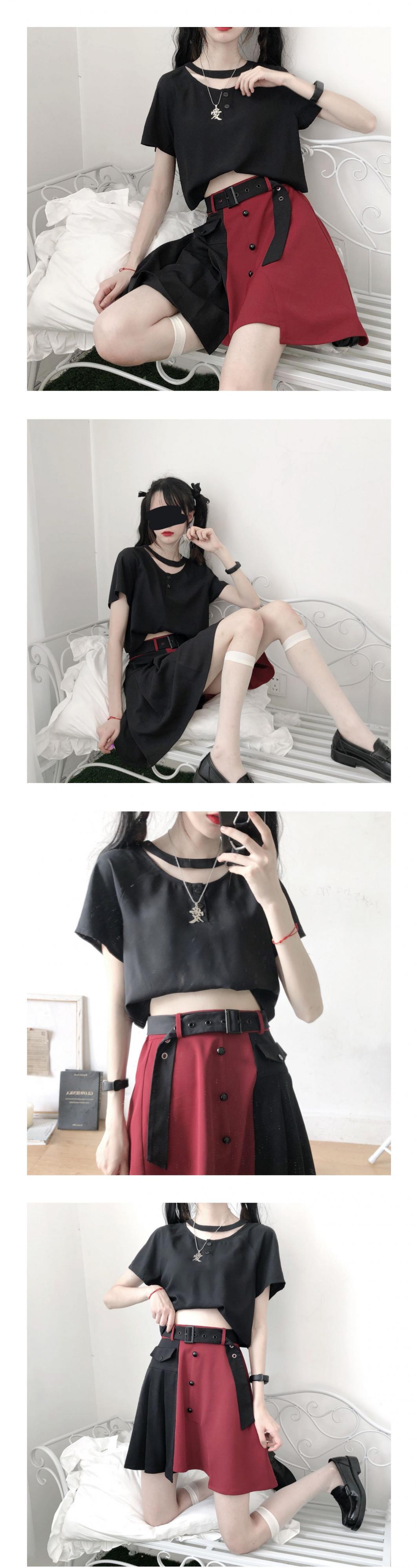 pinksaviorサマーベリーフランスの恋人赤と黒yスリムスリミングスーツ友達夏 レッド ブラック 大人ガーリー スウィート キュート カジュアル 夏物 PSTB79433185290