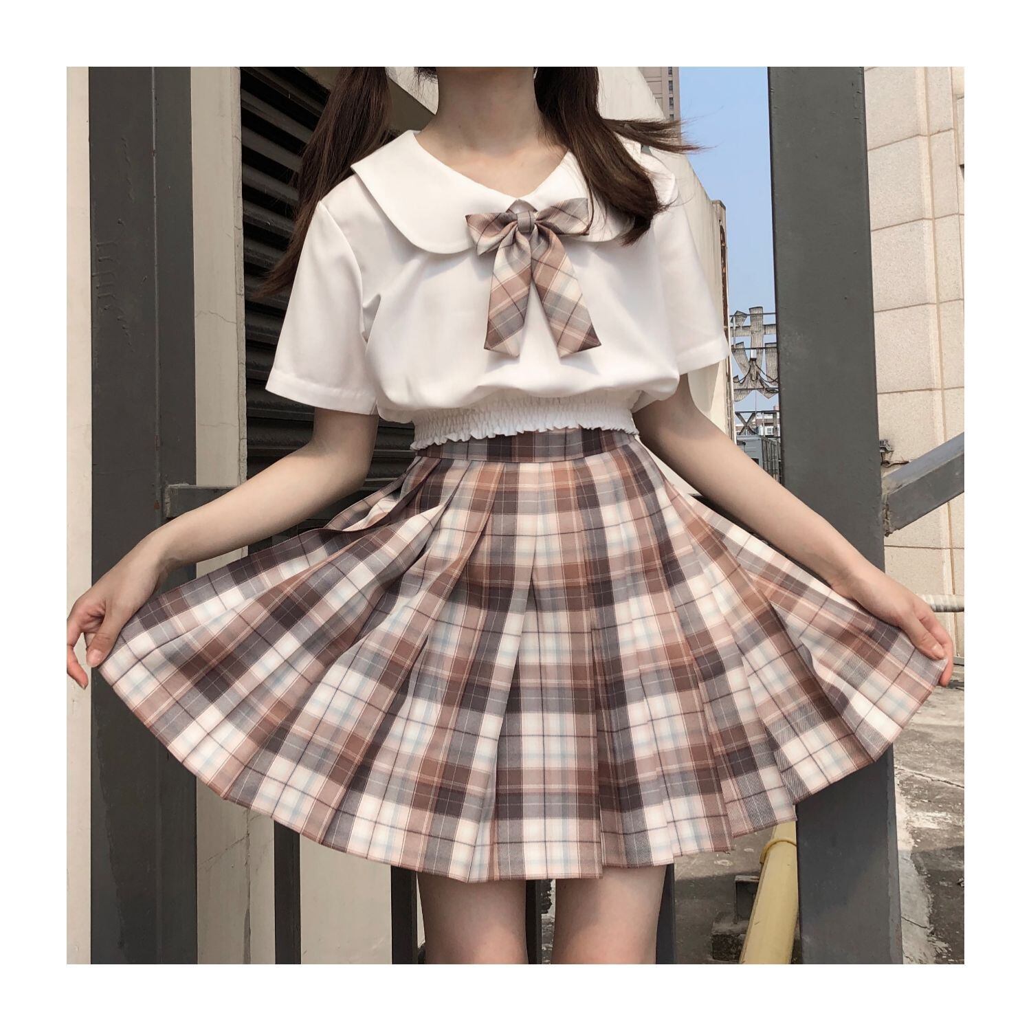 【送料無料】 pinksaviorトゥモロー/ピーチピーチ/ヘビーフォグユニムオーソドックスJKグリッドスカートカレッジスタイルプリーツスカートスカート PSTB4150876584