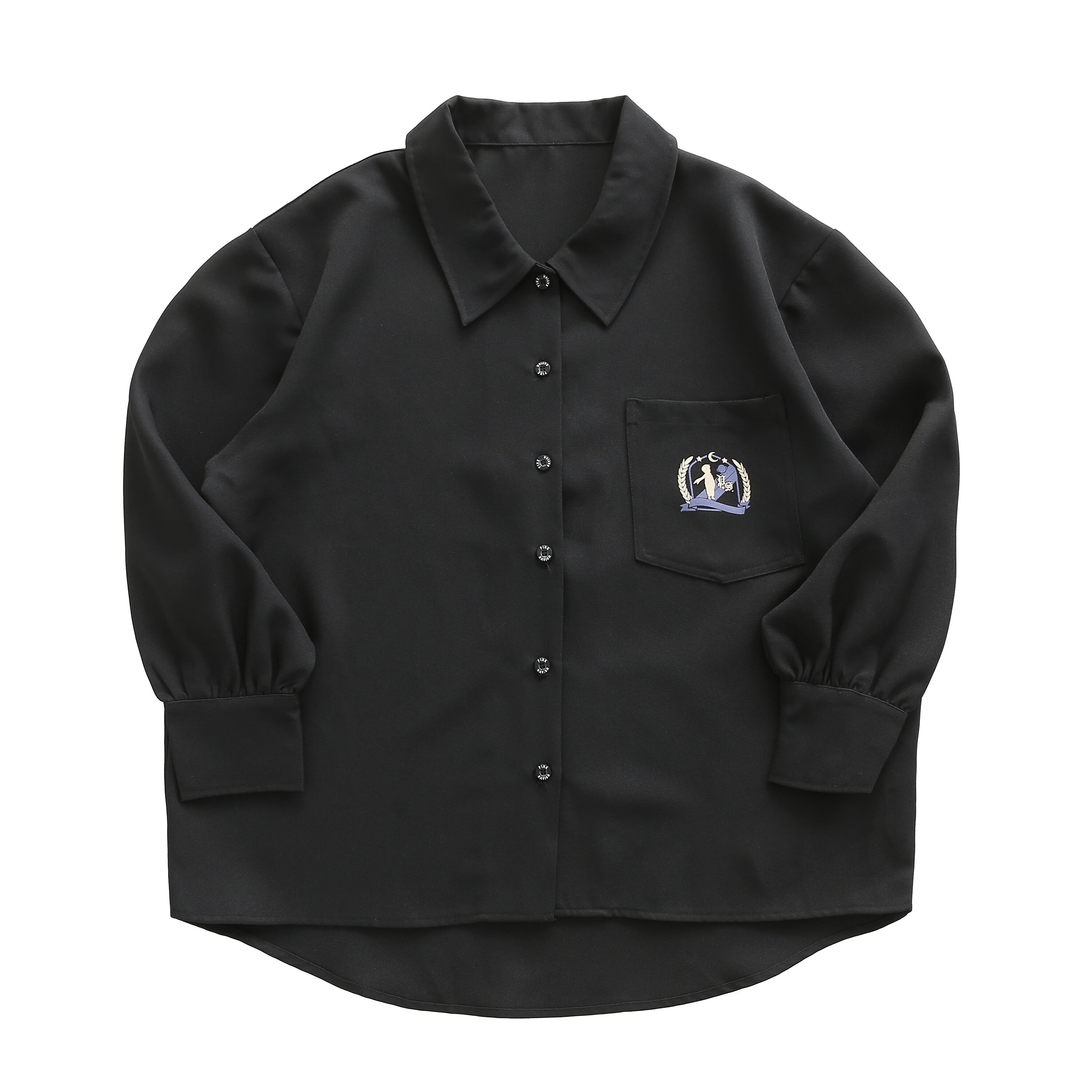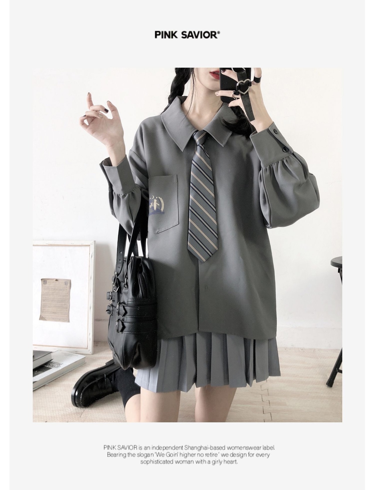 【送料無料】 pinksaviorリトルプリンス黒、白、グレーの3色ルーズ長袖シャツ女性秋冬トップス(フリーネクタイ) ロング ホワイト ブラック オータム 秋物 ウィンター 冬物 PSTB4470272380