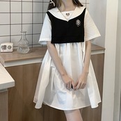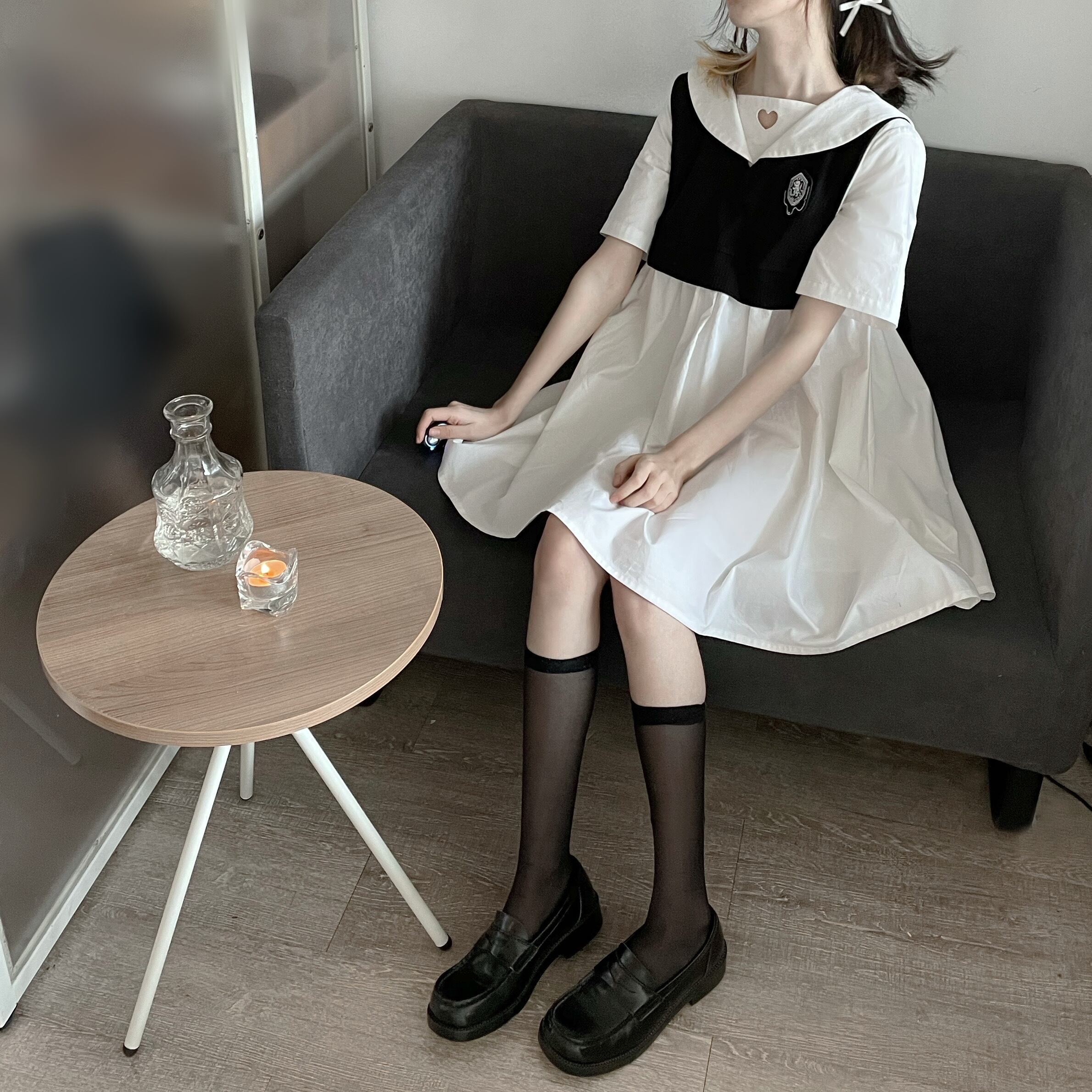 【送料無料】 pinksavior白い気質愛初恋中空人形スカート+バッジを送るための黒いベストツーピースセット ホワイト ブラック PSTB55842035083