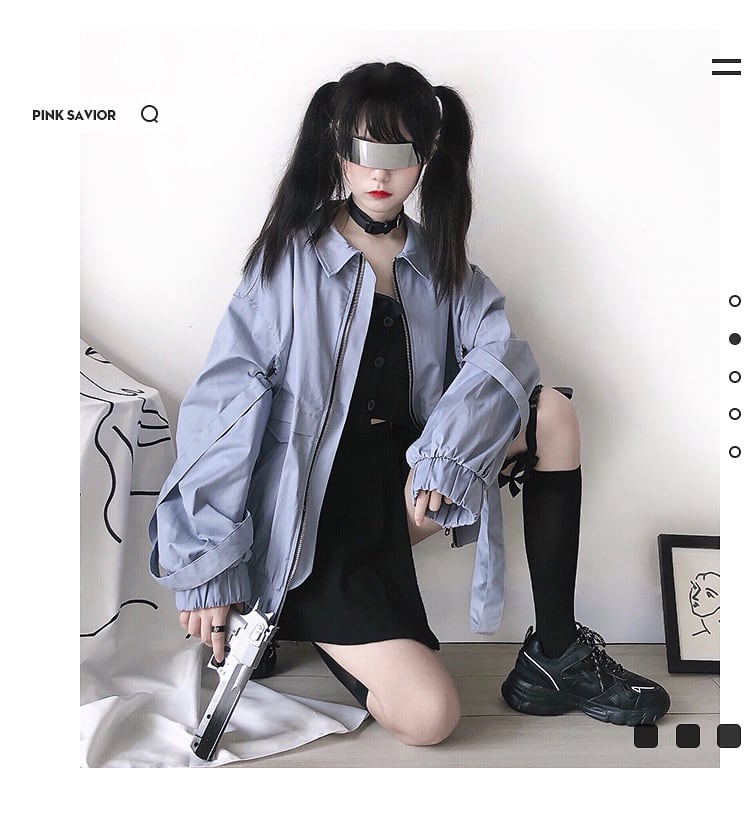 色:ブルーショートコート,ブルーのロングコート,黒の不規則なスリング,黒の不規則なダブルジッパーキュロット