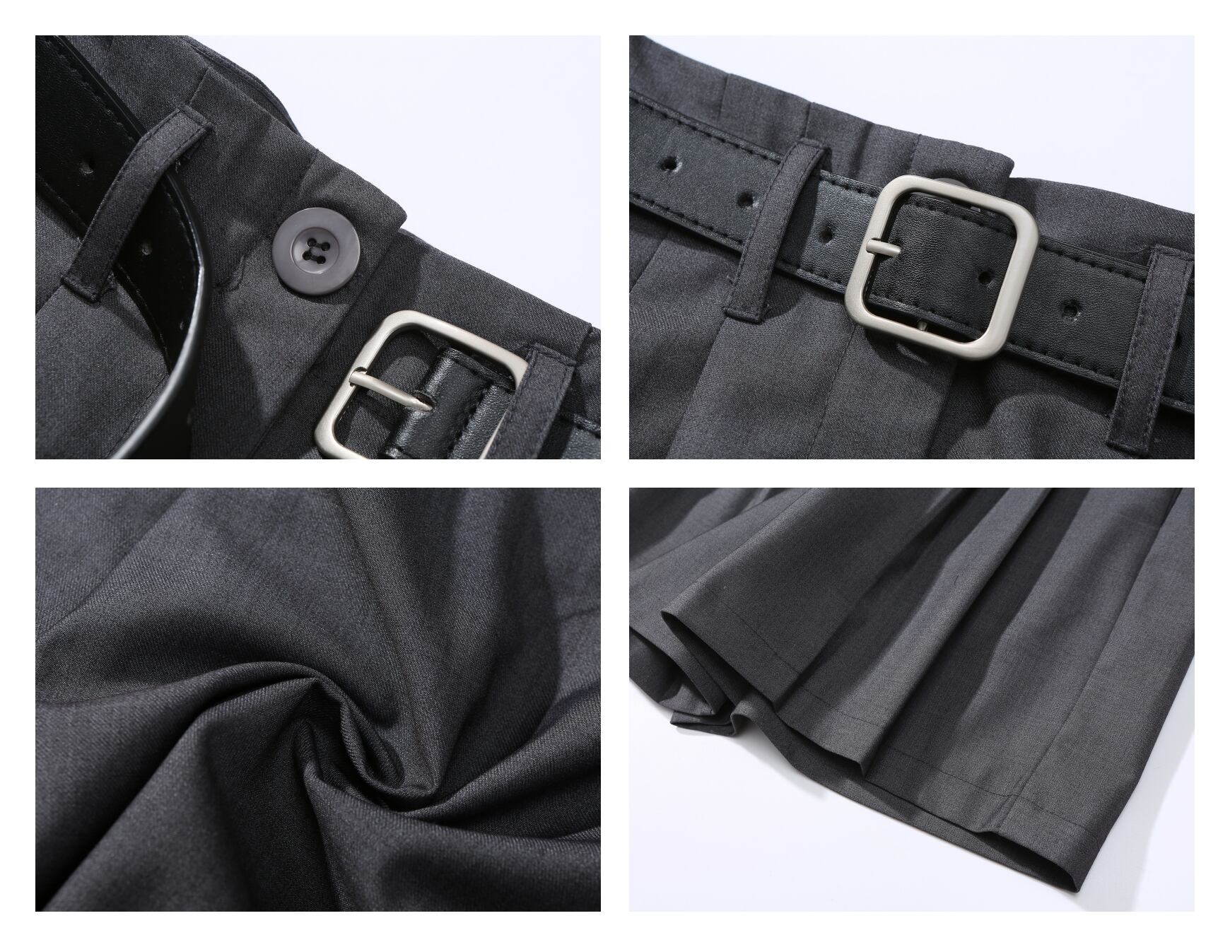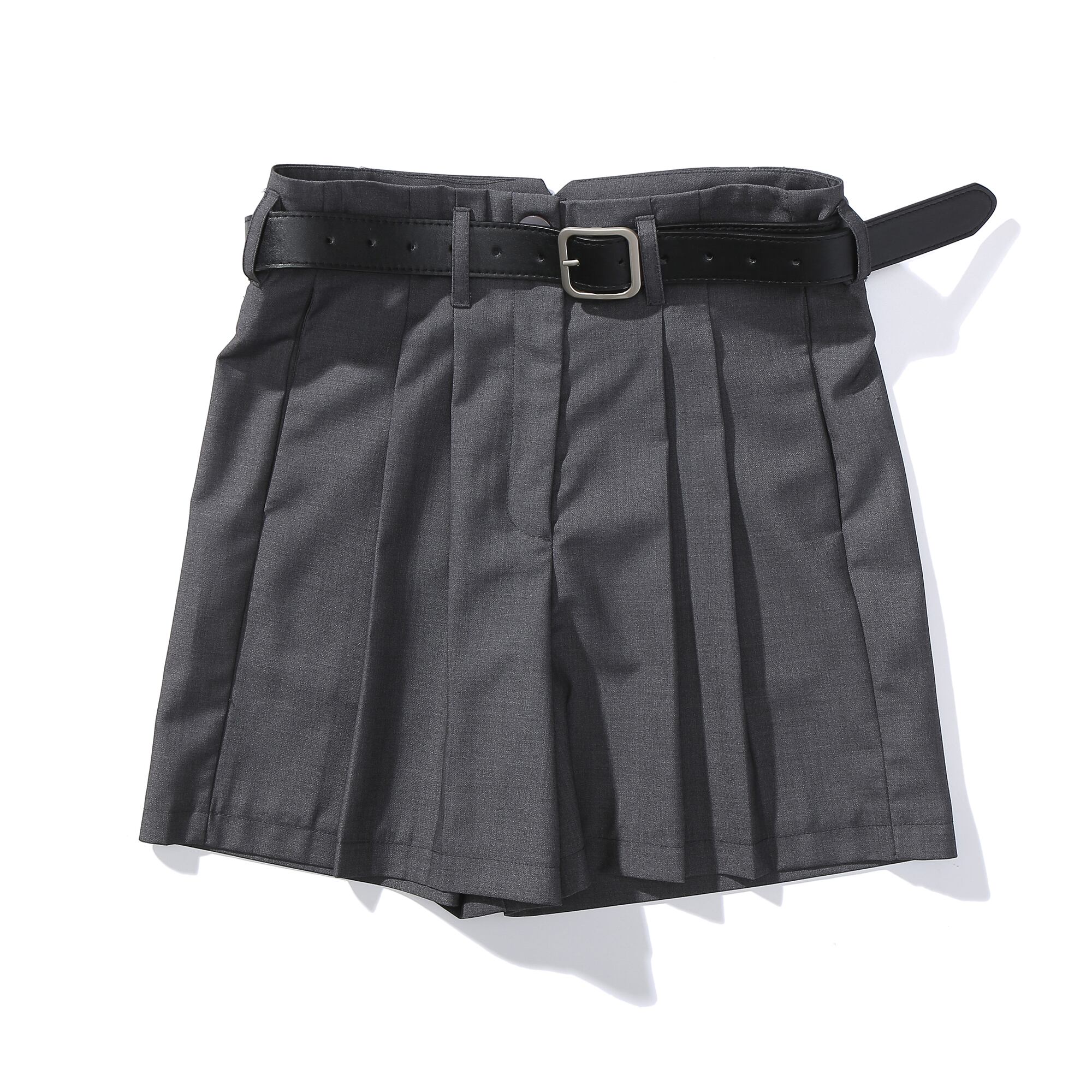 【送料無料】 Pinksaviorは学生青年大学風グレーと黒の2色プリーツスーツショーツ女性薄片(フリーベルト) ピンク ブラック ハーネス ブルマー PSTB18421704014
