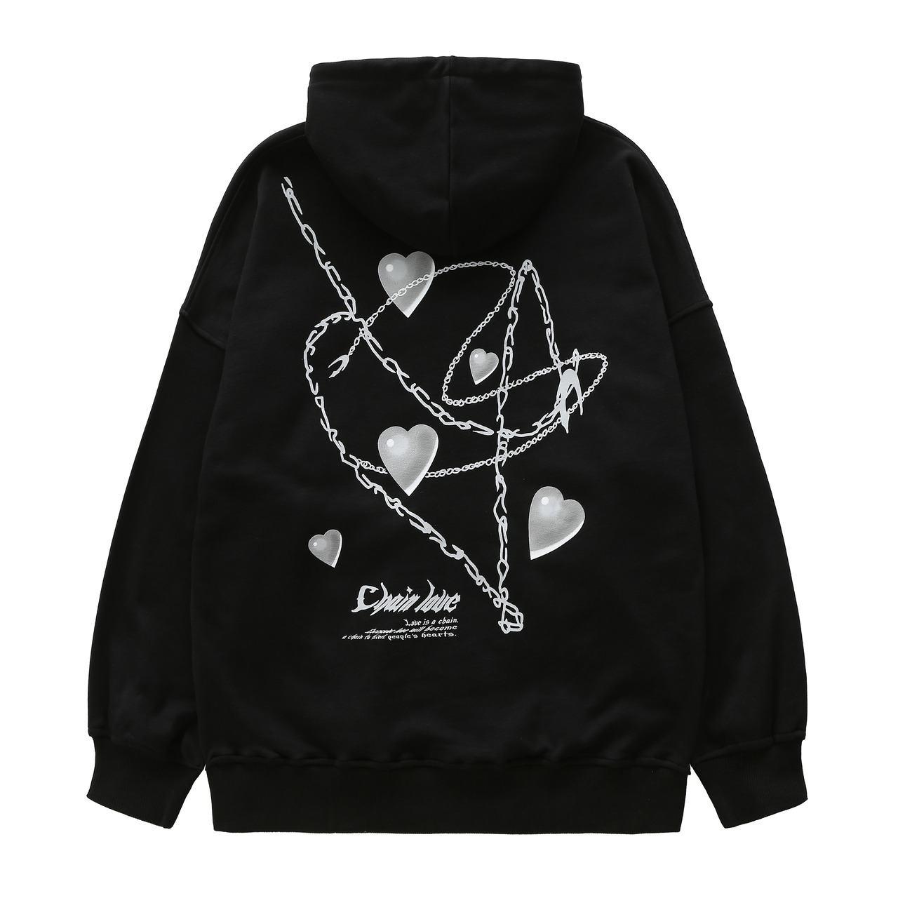 【送料無料】 pinksaviorハートチェーンのフロントとバックのプリントBLACK AND WHITEのフード付きルーズボーイサイズセーターコート ホワイト ブラック PSTB61437864133