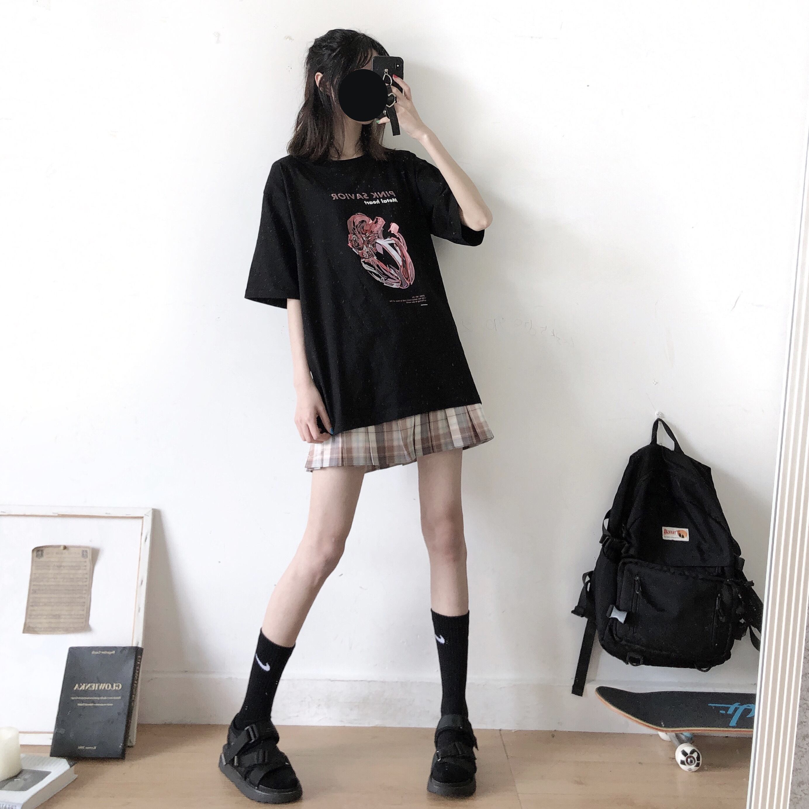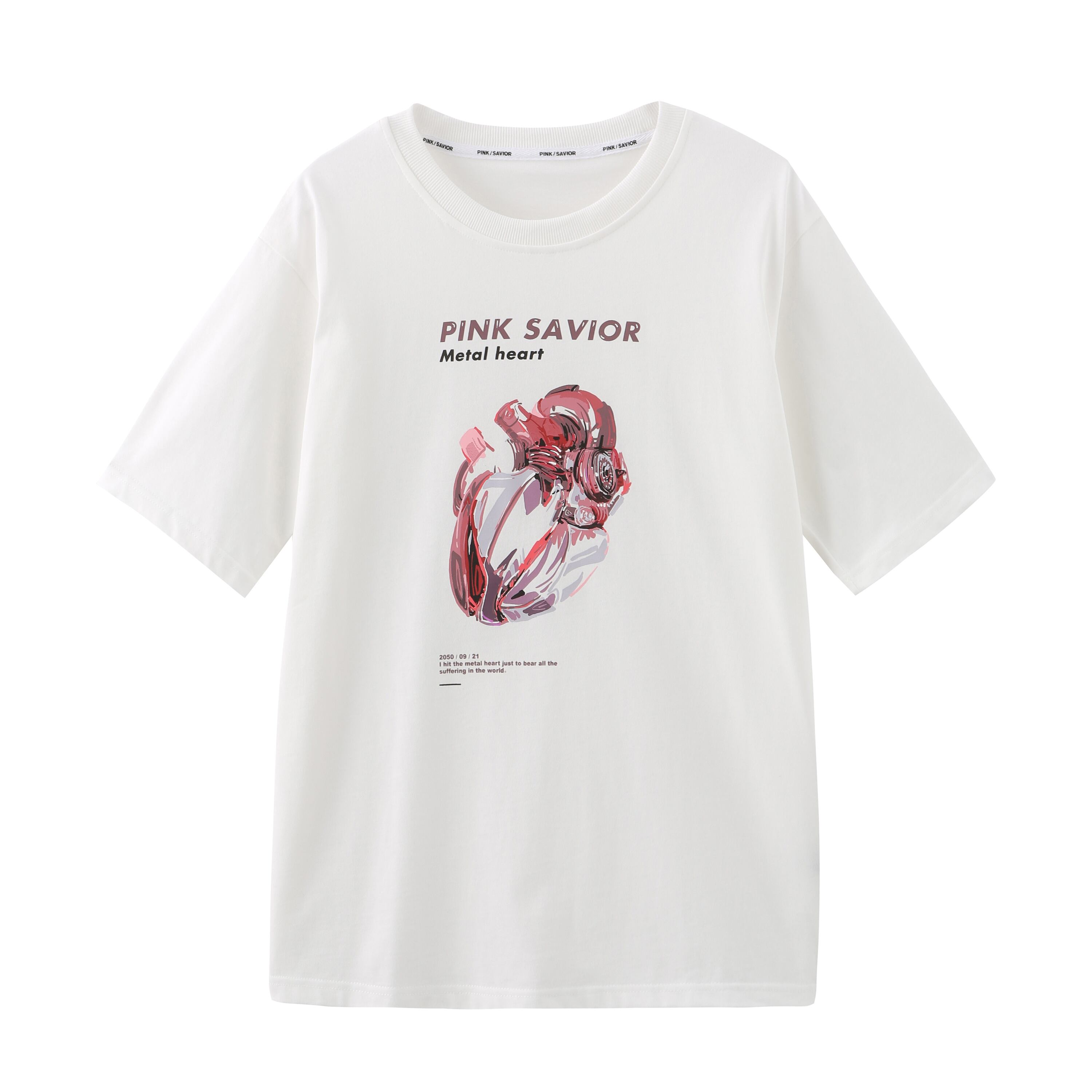【送料無料】 pinksaviorメタルハート多層プリント超クールな純綿半袖Tシャツ女性の夏の友達カップル夏服 コットン サマー 夏物 ピュア PSTB75560807757