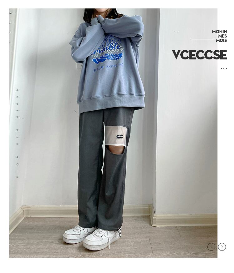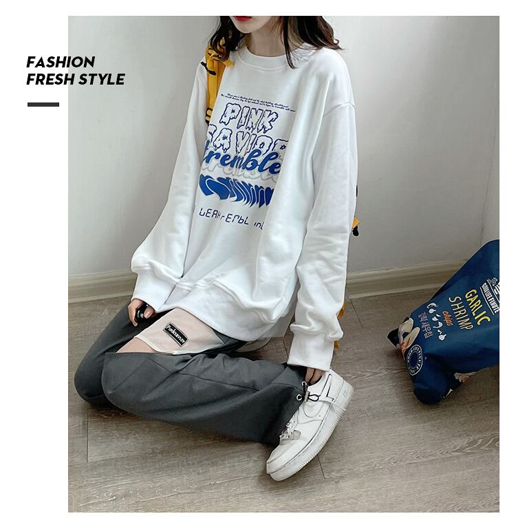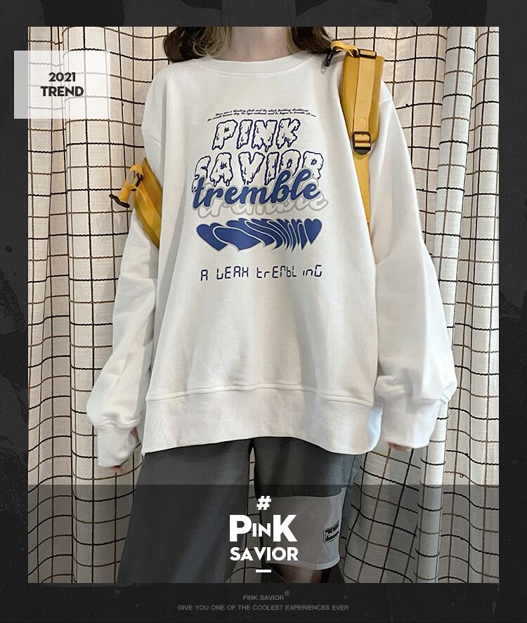 【送料無料】 pinksavior青と白のロマンチックな愛の春と秋の綿テリーラウンドネックの毎日のセーター ホワイト ブルー コットン スプリング 春物 オータム 秋物 Oネック PSTB64738448130