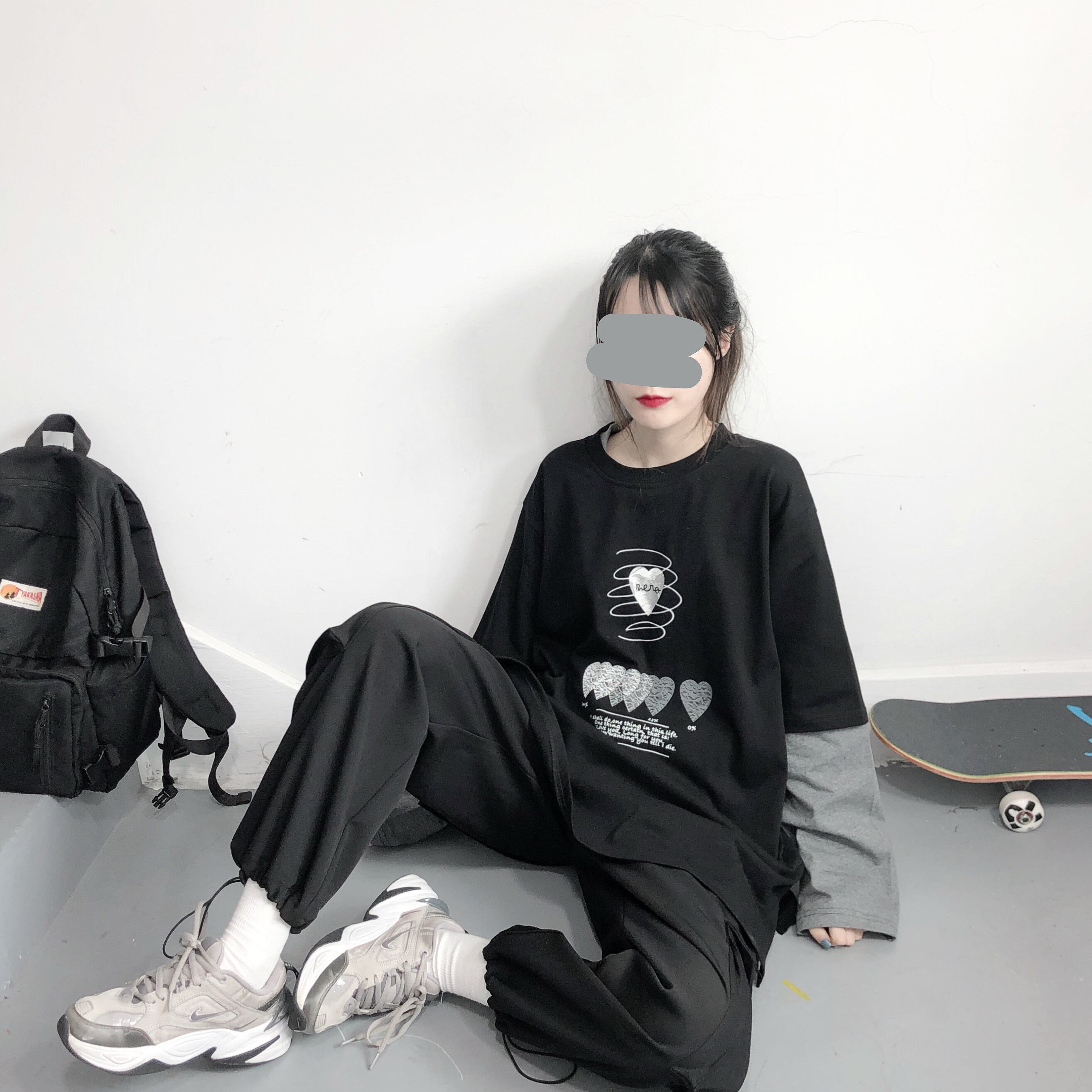 【送料無料】 pinksaviorセロハンシンプルなデザインのプリントブラック純綿半袖Tシャツ女性の夏のルーズTシャツ コットン サマー 夏物 ピュア PSTB91858094054
