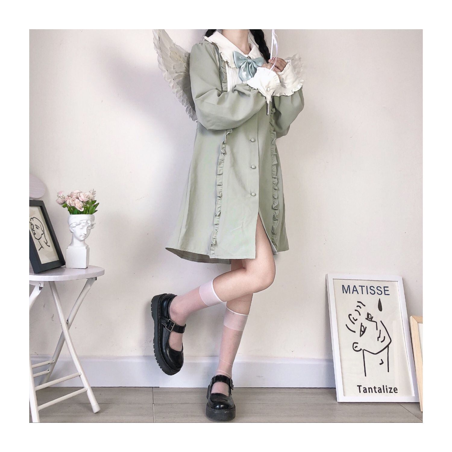 【送料無料】 pinksaviorウォーターブルーブライトイエローライトグリーン秋のデザインレースワンピース(蝶ネクタイを送る)在庫あり リボン オータム 秋物 PSTB99525800011