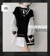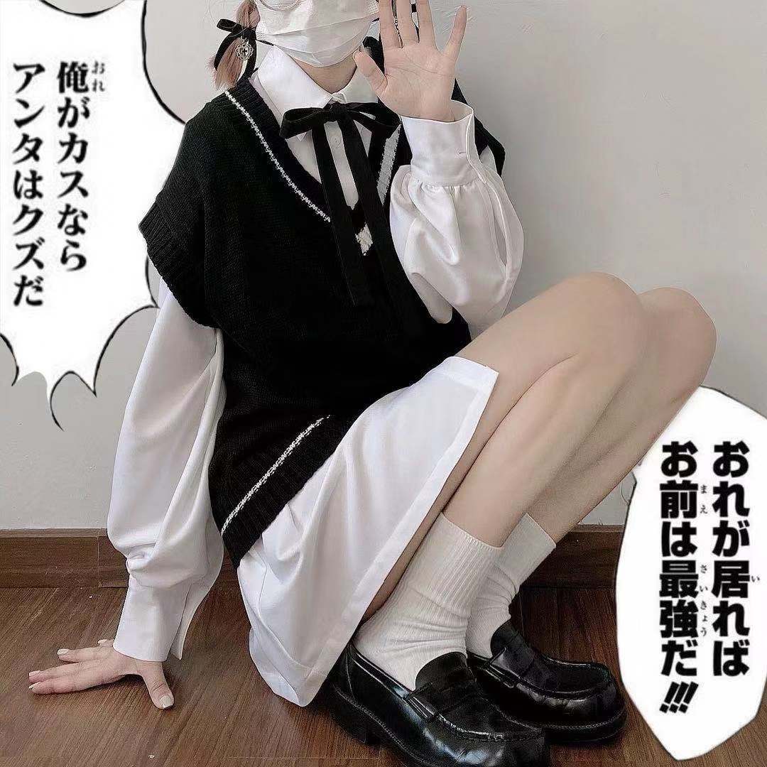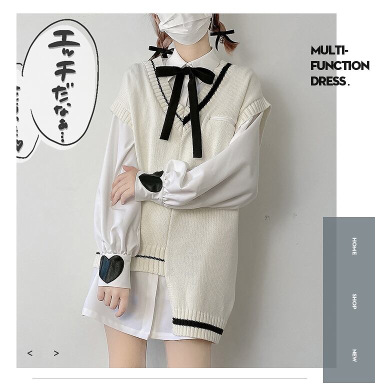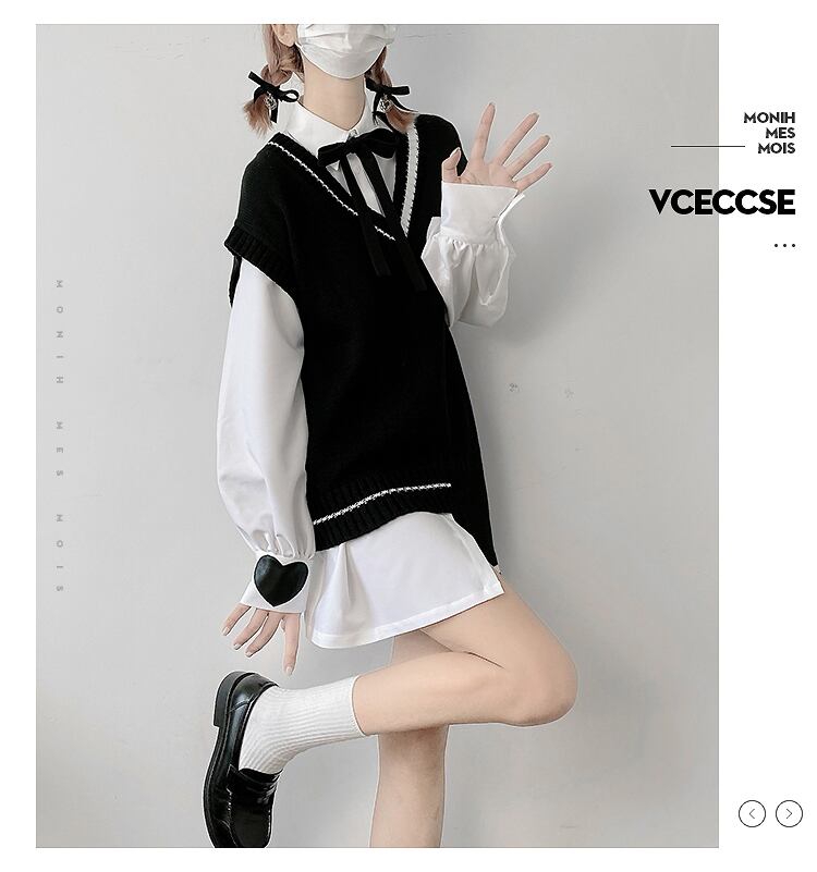 色:白のシャツ,ホワイトニットベスト,黒のニットベスト