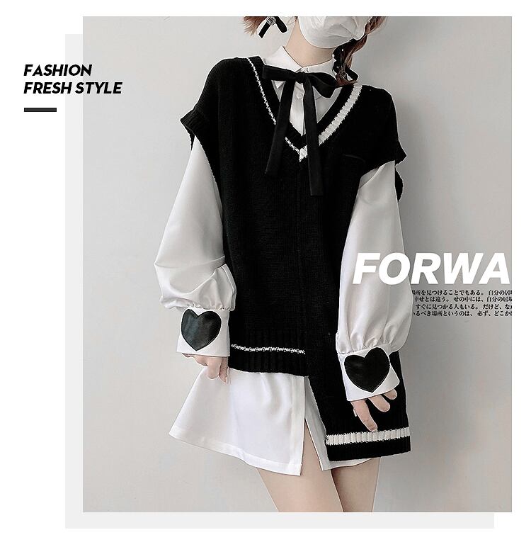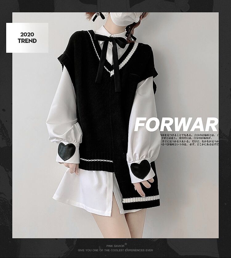 【送料無料】 pinksaviorピーチハートシャツ+ニットイレギュラーベストインナー・アウターウェアカジュアルツーピースセットカレッジスプリング 春物 PSTB35079506757
