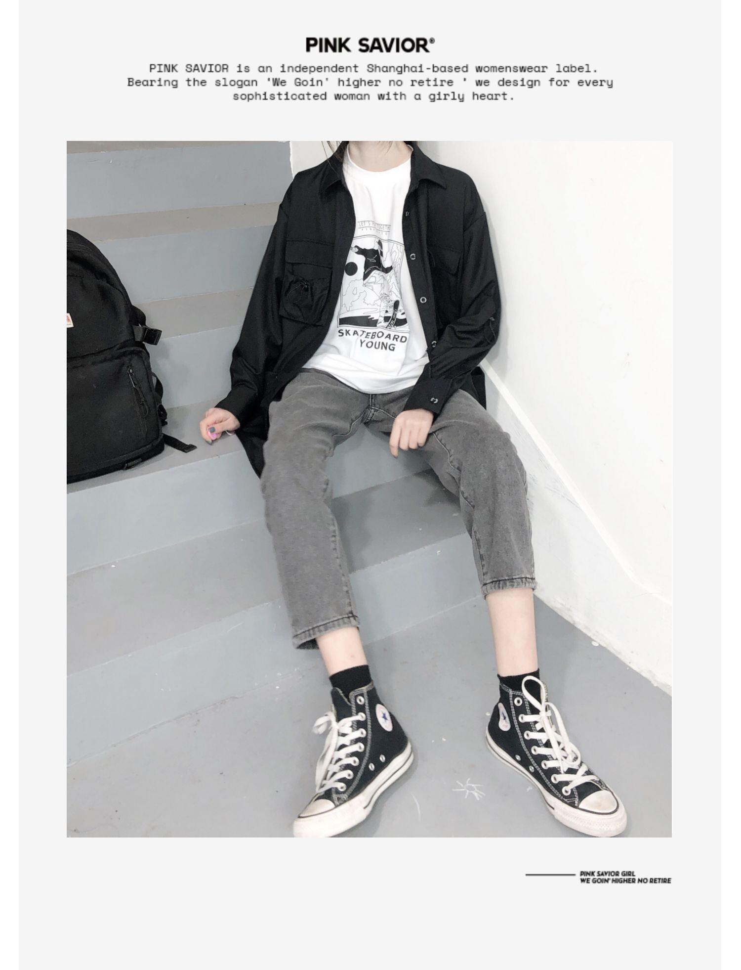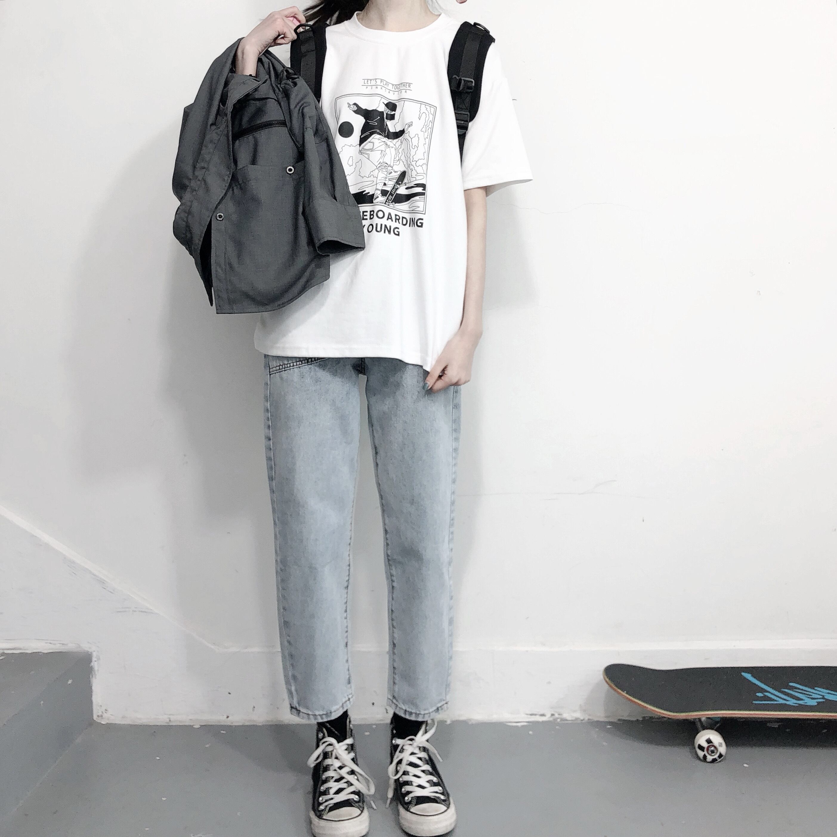pinksaviorストリートスケートボードプリントラウンドネックオデルホワイト半袖Tシャツ女性の夏の軽くて薄いデザイン サマー 夏物 Oネック PSTB73824281039