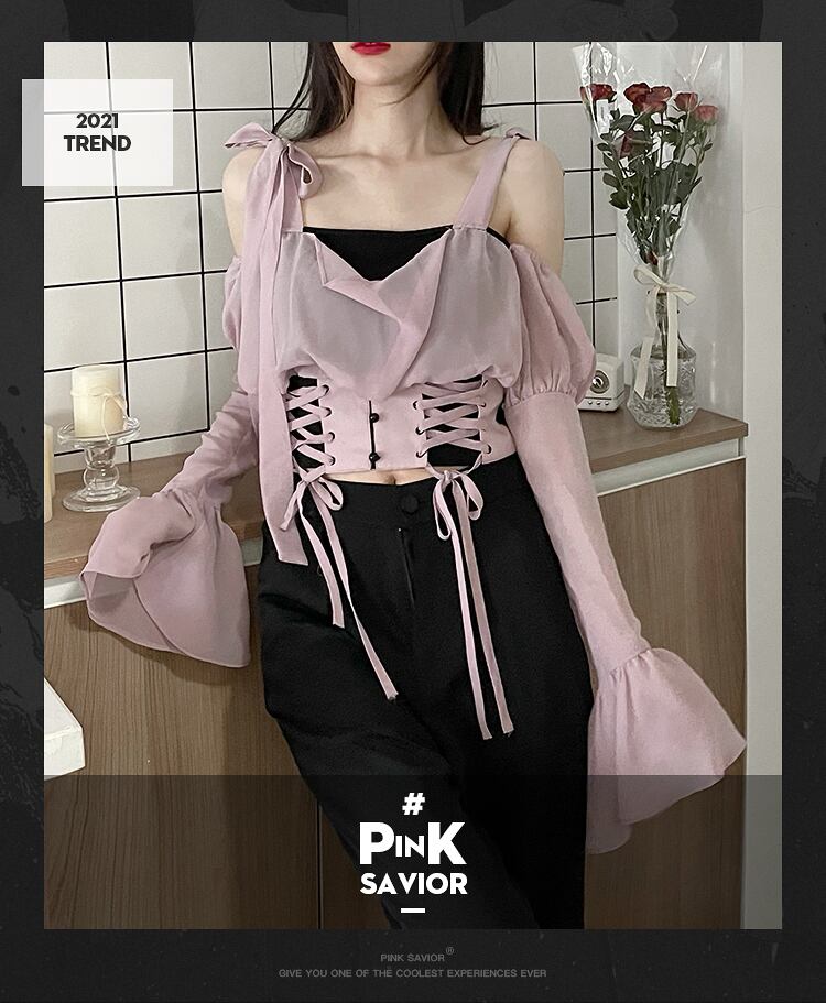 【送料無料】 pinksavior夏の夢ピンクパープル&ブラックピュアデザイアハイウエストスリミングスペシャルデザインコルセットシフォントップス ハイウェスト サマー 夏物 PSTB45044374476