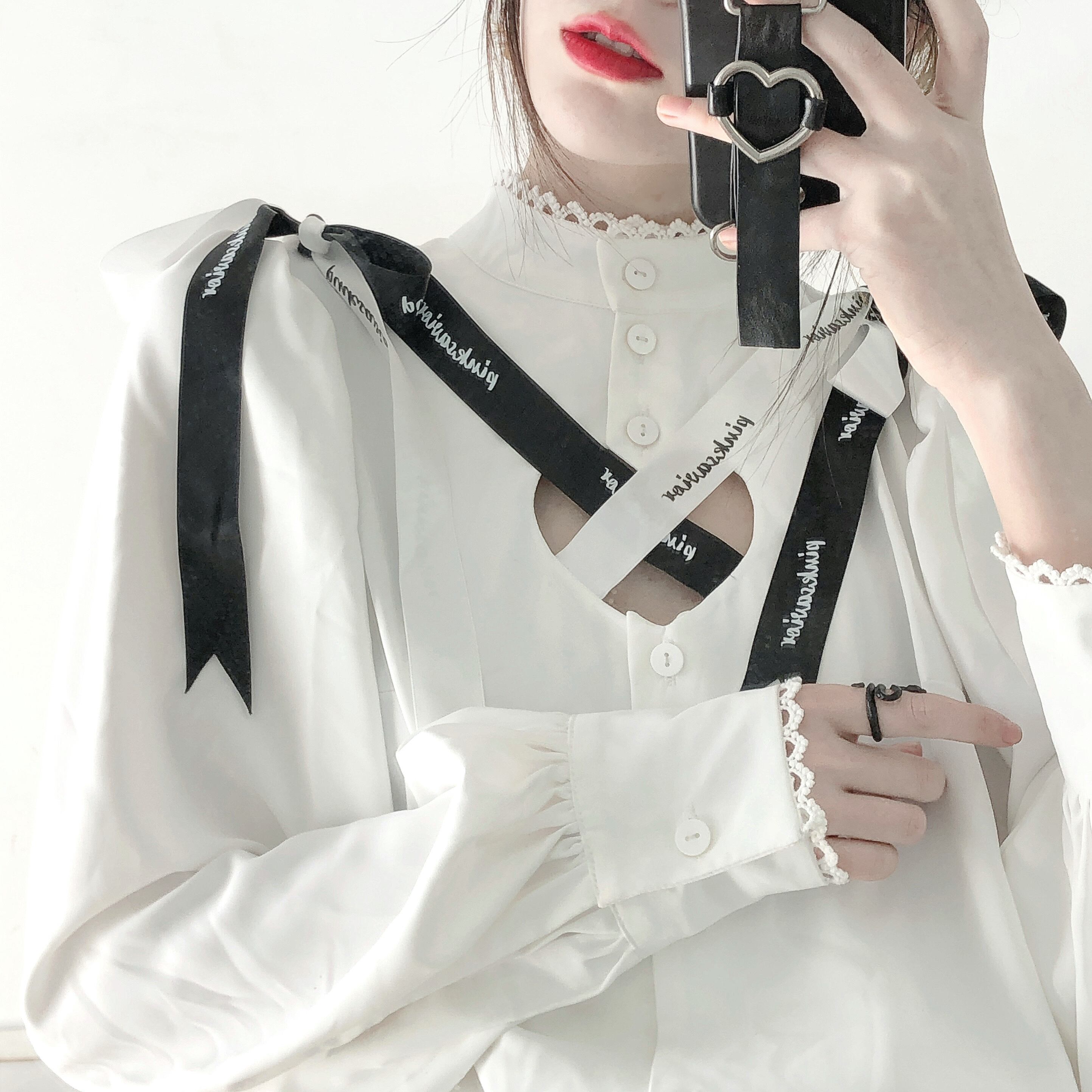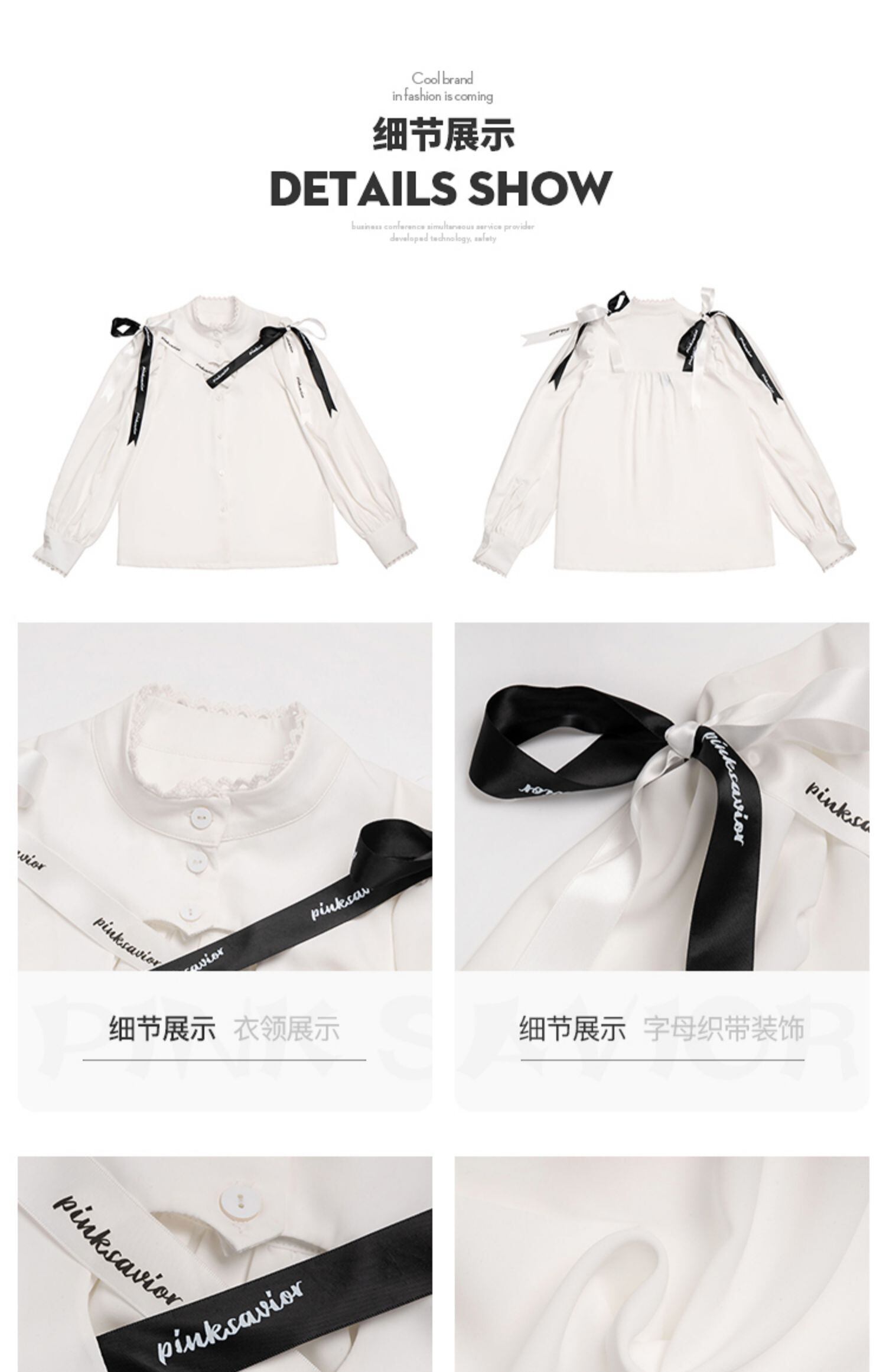 pinksavior中空ハートリボンプリントテクスチャ春オールマッチシャツハーフスカートスーツ スプリング 春物 PSTB20367912949