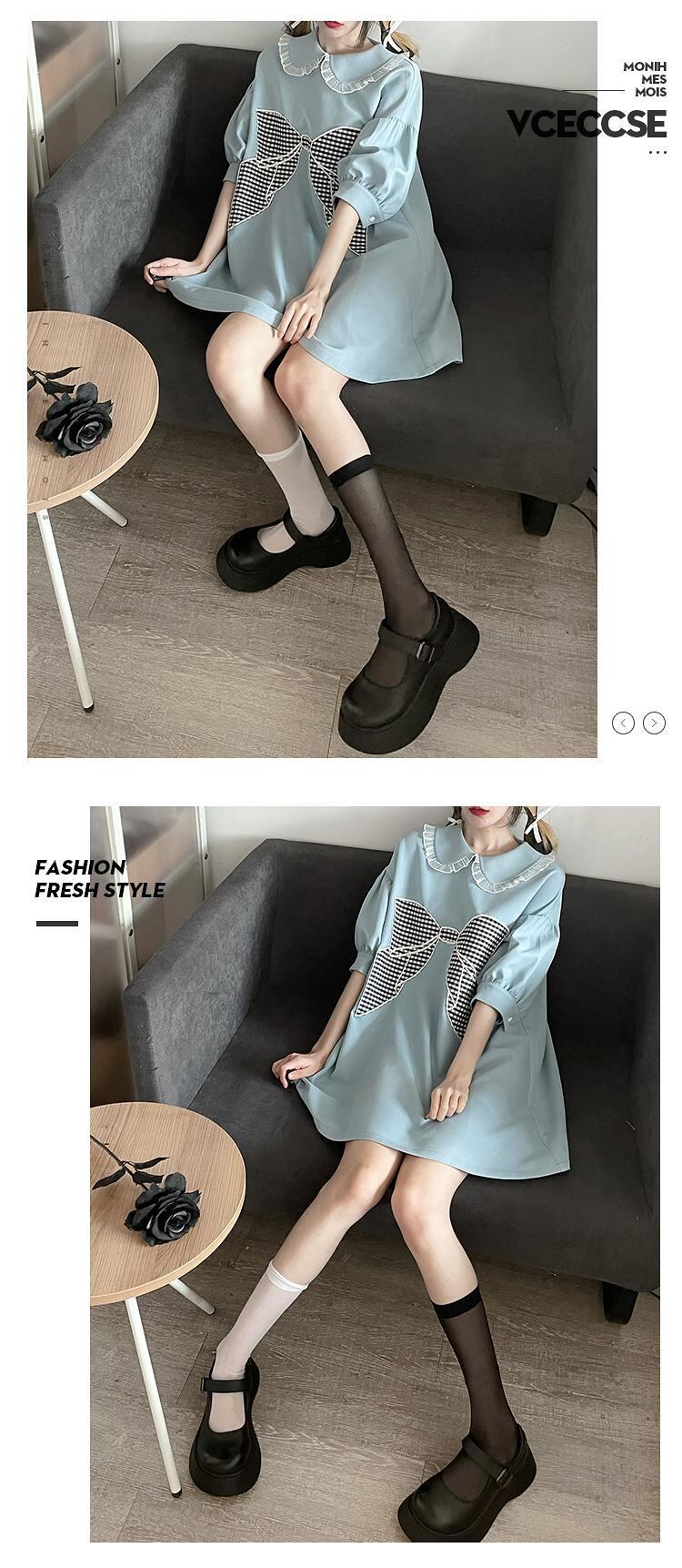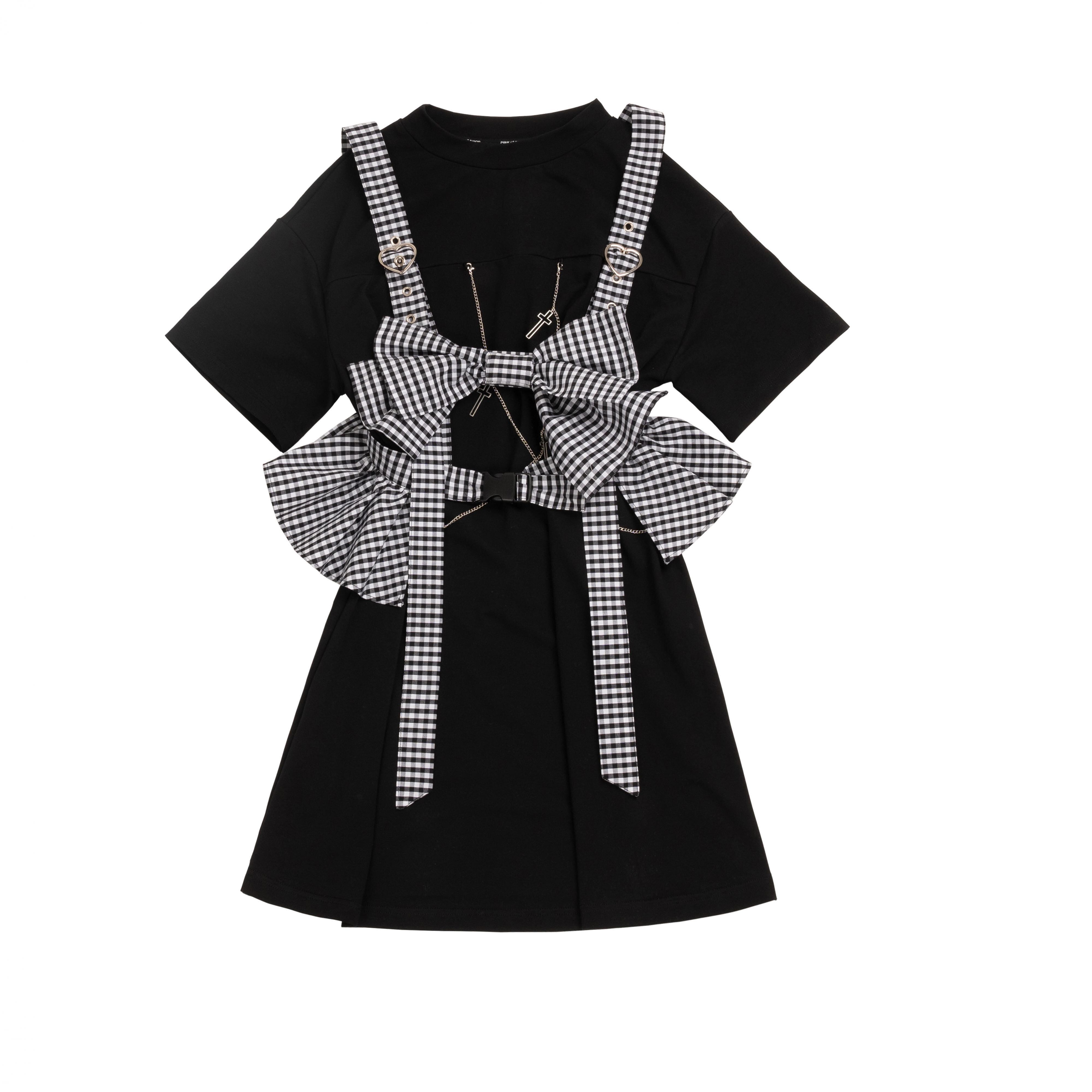色:ストラップなしの青いラウンドネックロングTは別途購入する必要があります,ストラップなしの黒いラウンドネックロングTは別途購入する必要があります,格子ストラップ装飾,ブラックドールカラーレース刺繡ロングTスカート,ブルードールカラーレース刺繡ロングTスカート