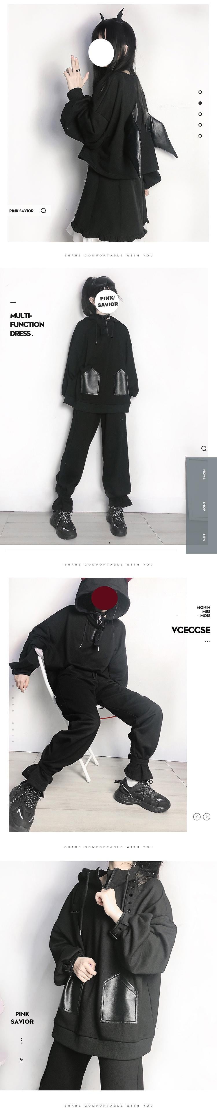 PINKSAVIORデーモンブリーディング赤と黒のカップルガールフレンドレースデーモンウィングスウェットシャツセット ピンク レッド ブラック PSTB57089862739