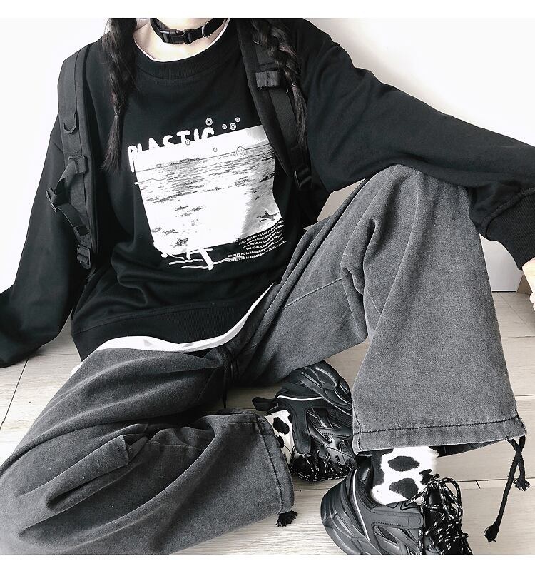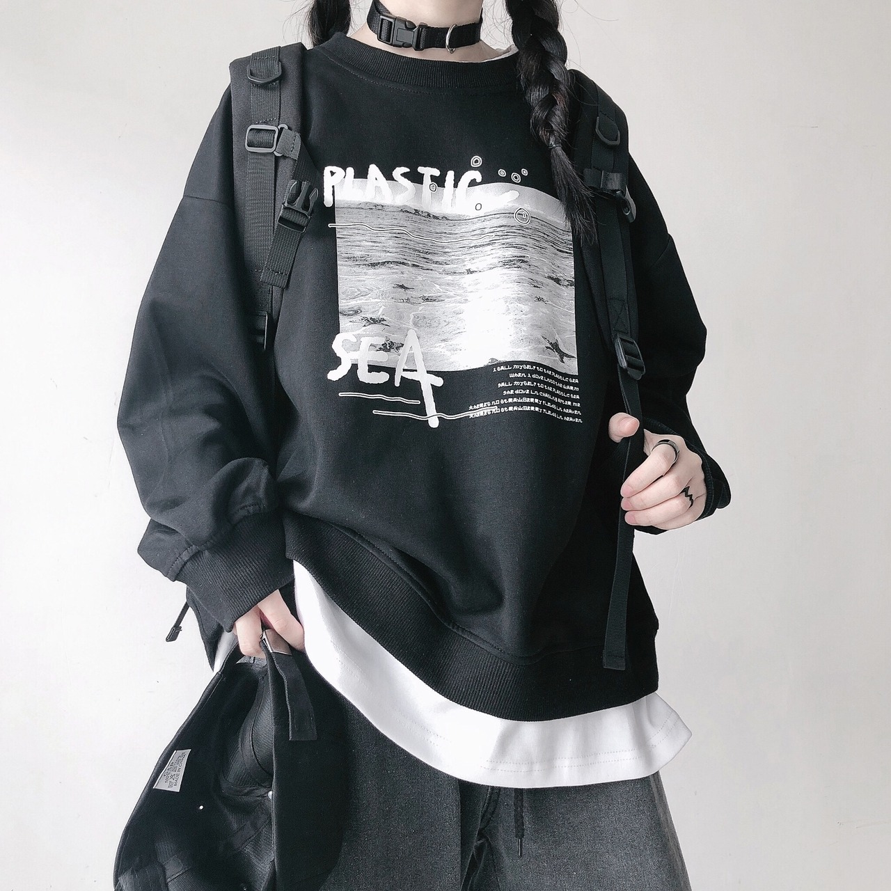 【送料無料】 pinksavior秋の海辺の秋の服の学生は、ツーピースのルーズヘッジコットンオールマッチプリントセーターを偽造します オータム 秋物 PSTB83660141027