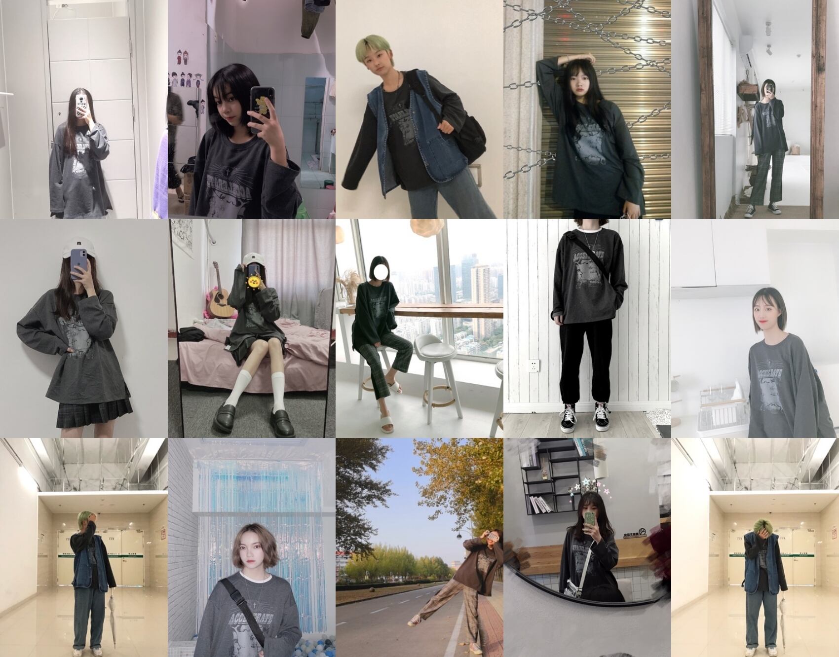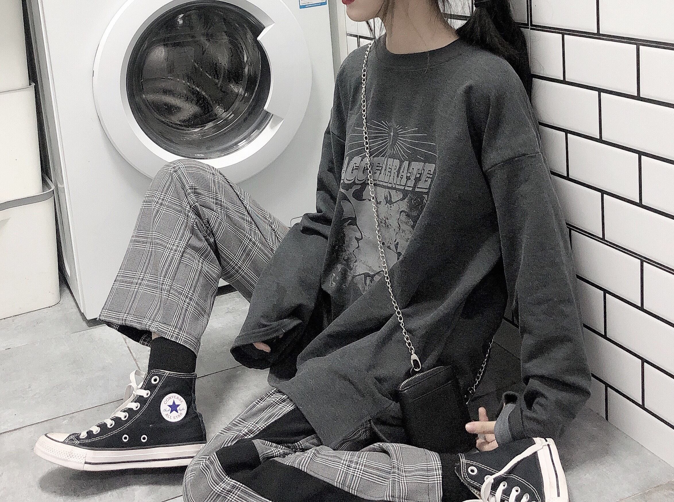 【送料無料】 pinksavior灰色??のレトロな印刷ルーズで薄いカジュアルな学生長袖セーター女性の春と秋の薄いコート ロング スプリング 春物 オータム 秋物 PSTB42310606399
