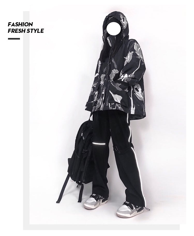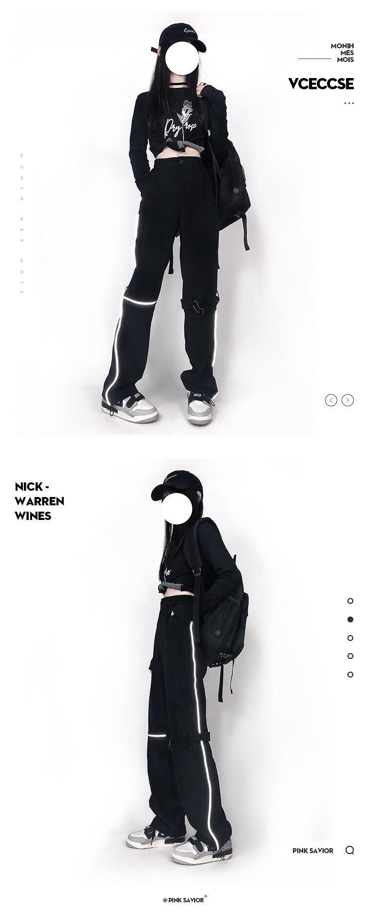 【送料無料】 pinksaviorカラビナ機能口蹄疫調節可能な反射ベルト装飾ドレープ秋と冬の黒のオーバーオール ブラック オータム 秋物 ウィンター 冬物 アジャスタブル ハーネス PSTB87959918116