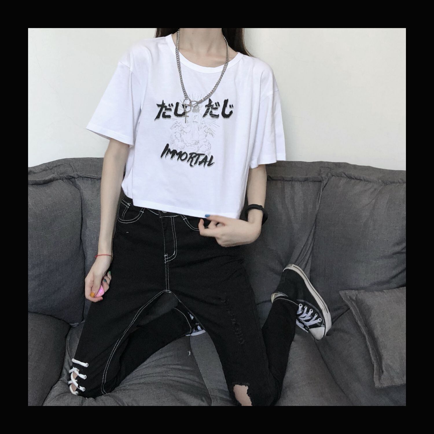 pinksaviorグラフィティ原稿デザインセンス肌にやさしい純綿長短カップル半袖Tシャツ女性の夏の友達 ショート ロング コットン サマー 夏物 ピュア PSTB74975443072