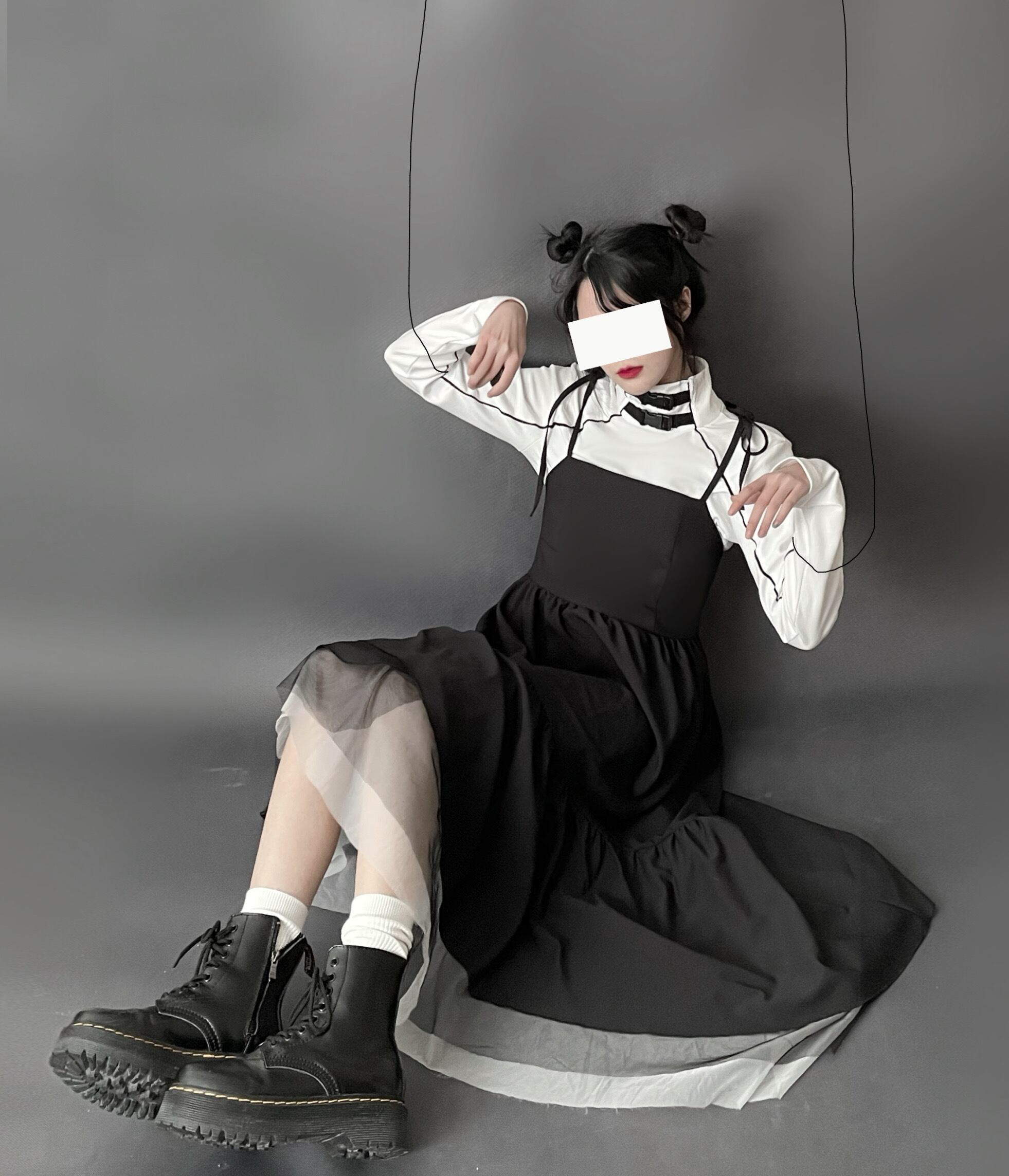 【送料無料】 pinksavior [人形]ラミネートガーゼスカートホワイトバックルボトミングスーツをステッチするスプリングサスペンダー ピンク 春物 PSTB65917173770