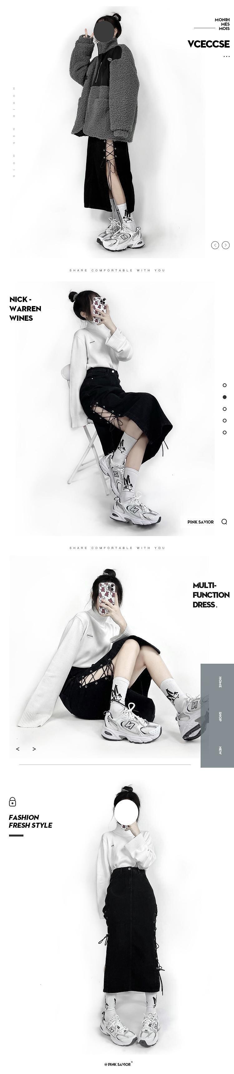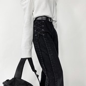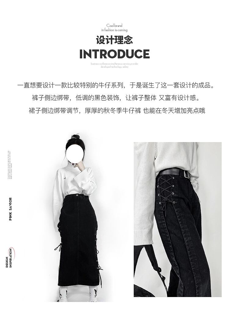【送料無料】 pinksavior包帯特別なデザイン黒の春と秋のズボンワイドレッグジーンズハーフスカート ブラック スプリング 春物 オータム 秋物 PSTB43937178087