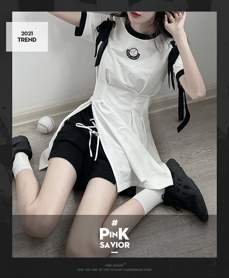 【送料無料】 pinksavior BaseballJuniorストラップレスドレスウエストショーツ刺?2021夏細くて長いT ロング ピンク レッド 刺繍 サマー 夏物 ブルマー PSTB56115389269