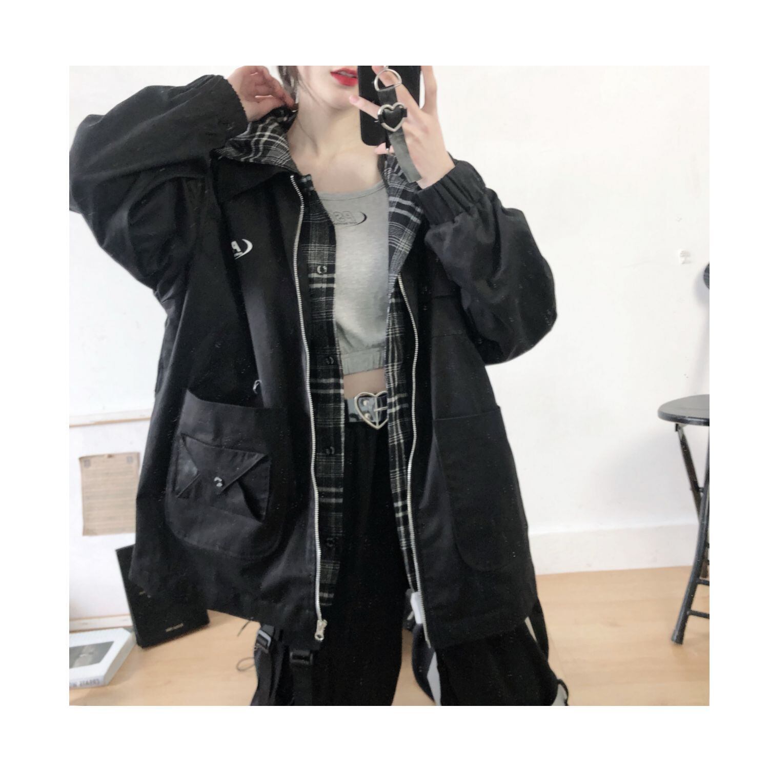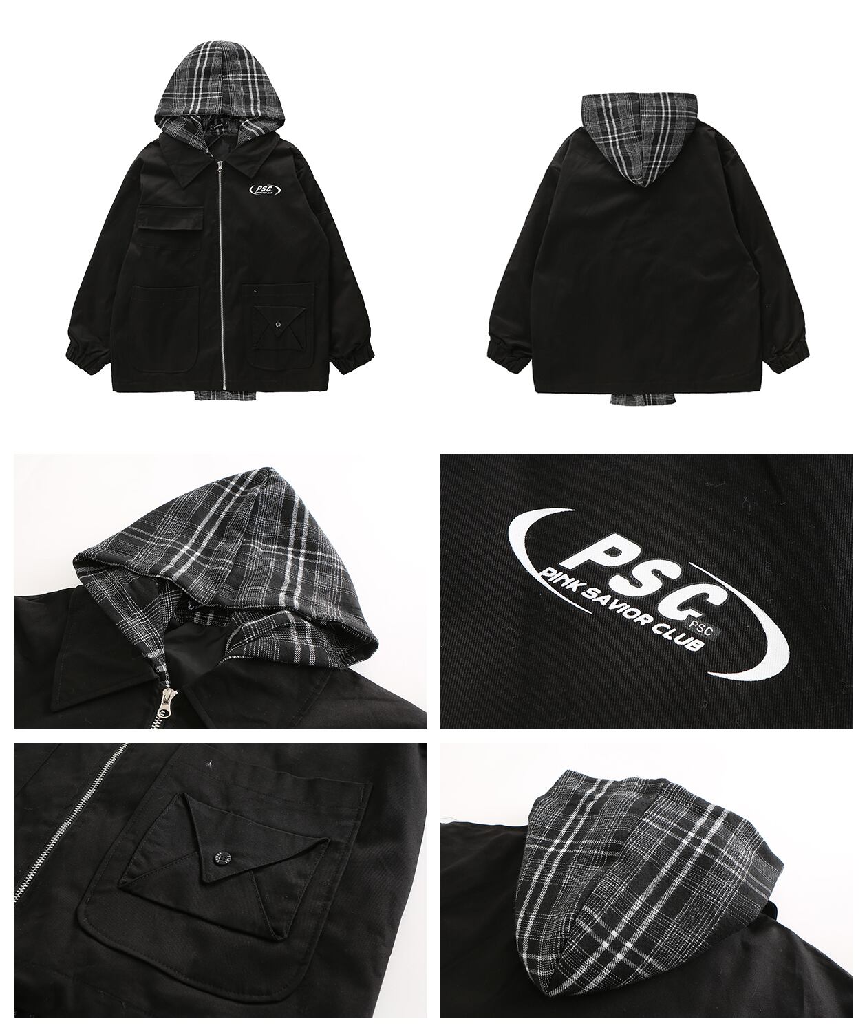 【送料無料】 pinksaviorステッチフェイクツーピースレディースジャケットフード付きチェック柄PSCシリーズウインドブレーカー秋薄ショートジャケットレディース オータム 秋物 PSTB16361430180