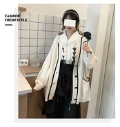 【送料無料】 pinksaviorエレガントなブラックローズレースフロントチェストストラップデコレーション春の白いシャツ ホワイト スプリング 春物 PSTB2888333511