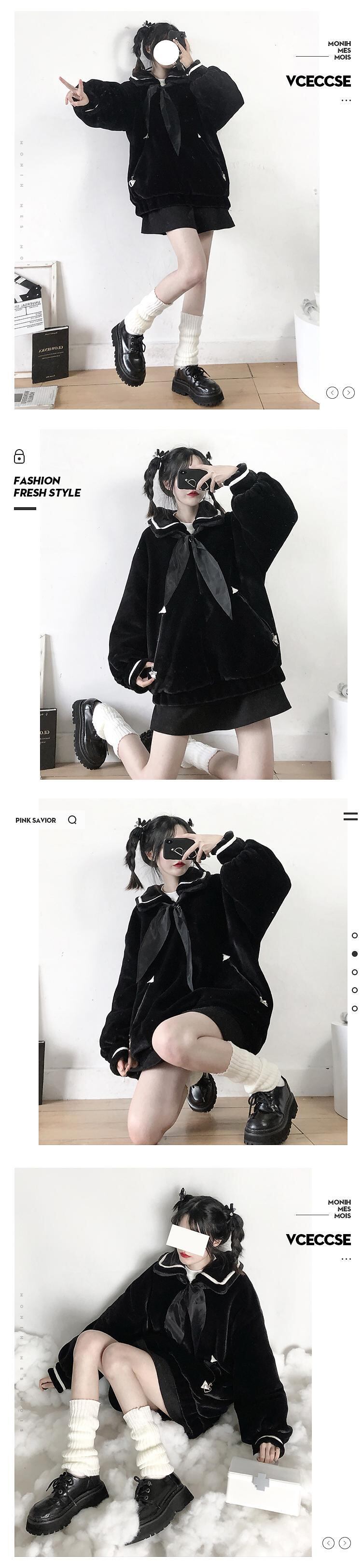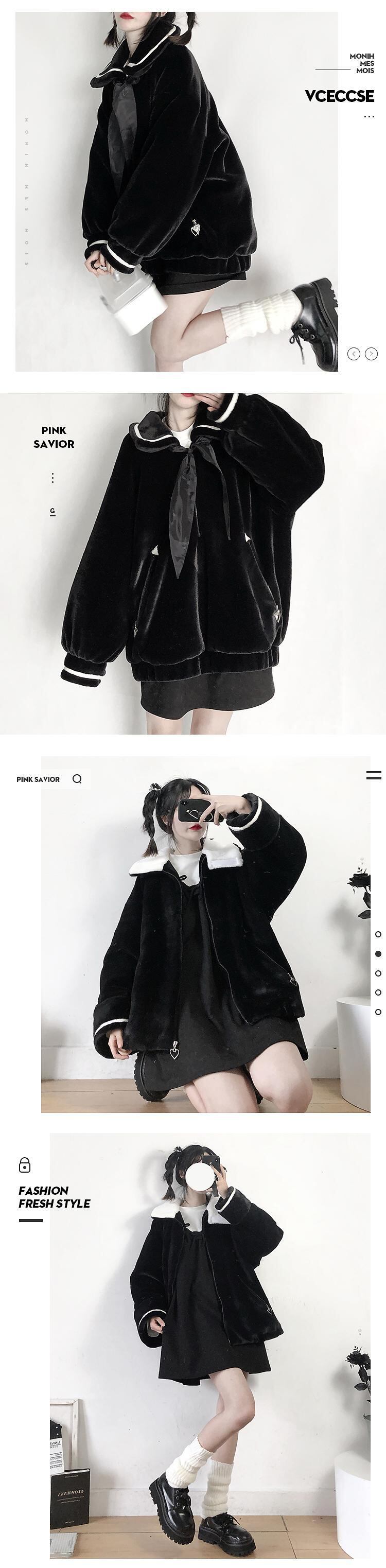 pinksaviorネイビー黒と白のヒットカラー愛ジッパー模造ウサギの毛皮暖かい毛皮2021蝶ネクタイを送る ホワイト ブラック リボン PSTB31713022789