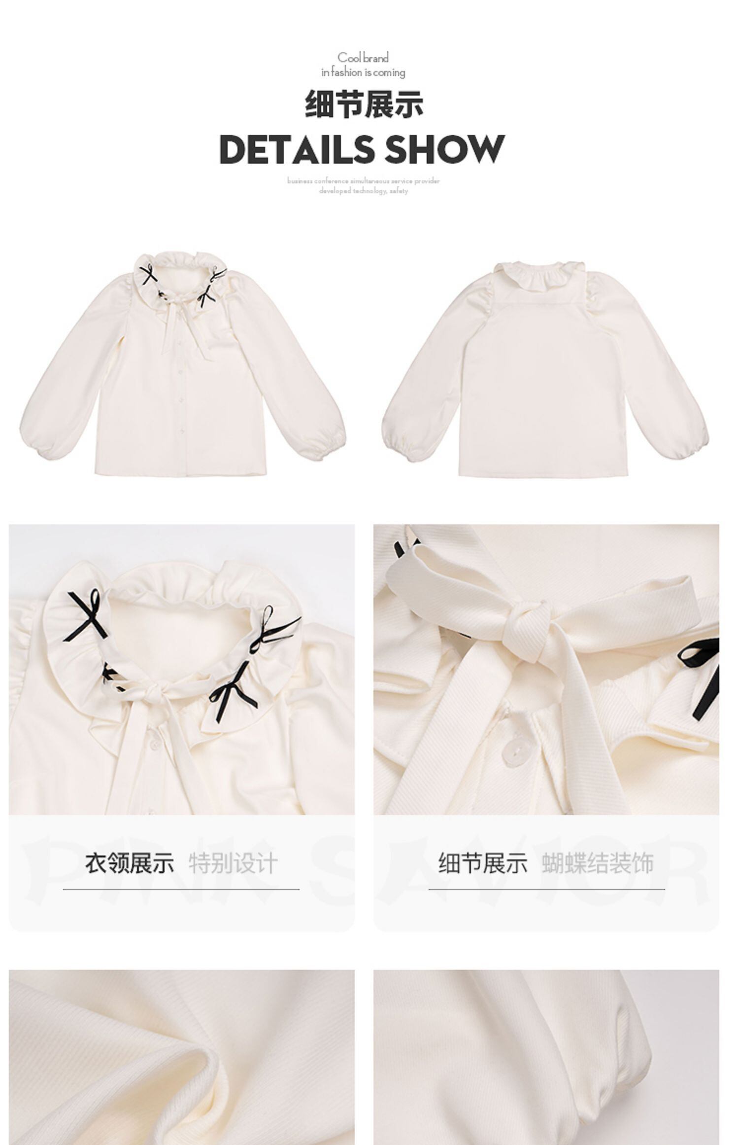 【送料無料】 pinksavior蝶羽ばたき白い小さなランタン袖襟レース装飾レース春シャツ2021 ホワイト ランタンスリーブ スプリング 春物 PSTB76559805584