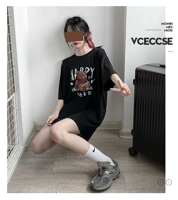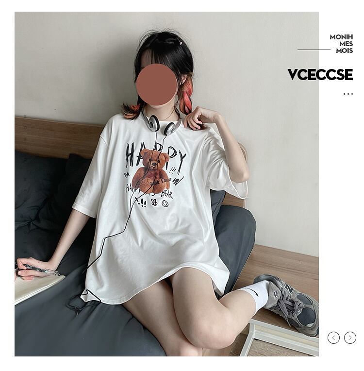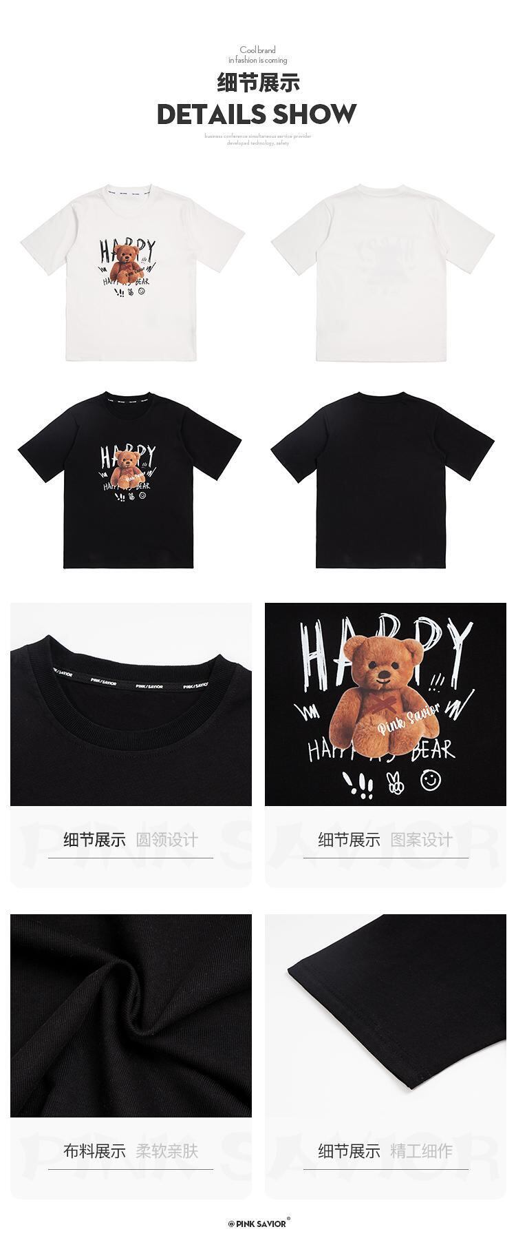 【送料無料】 pinksaviorBLACK AND WHITEのグラフィティベアプリントシャツは薄くてルーズなサマーコットンTシャツでした ホワイト ブラック 夏物 PSTB29685166862