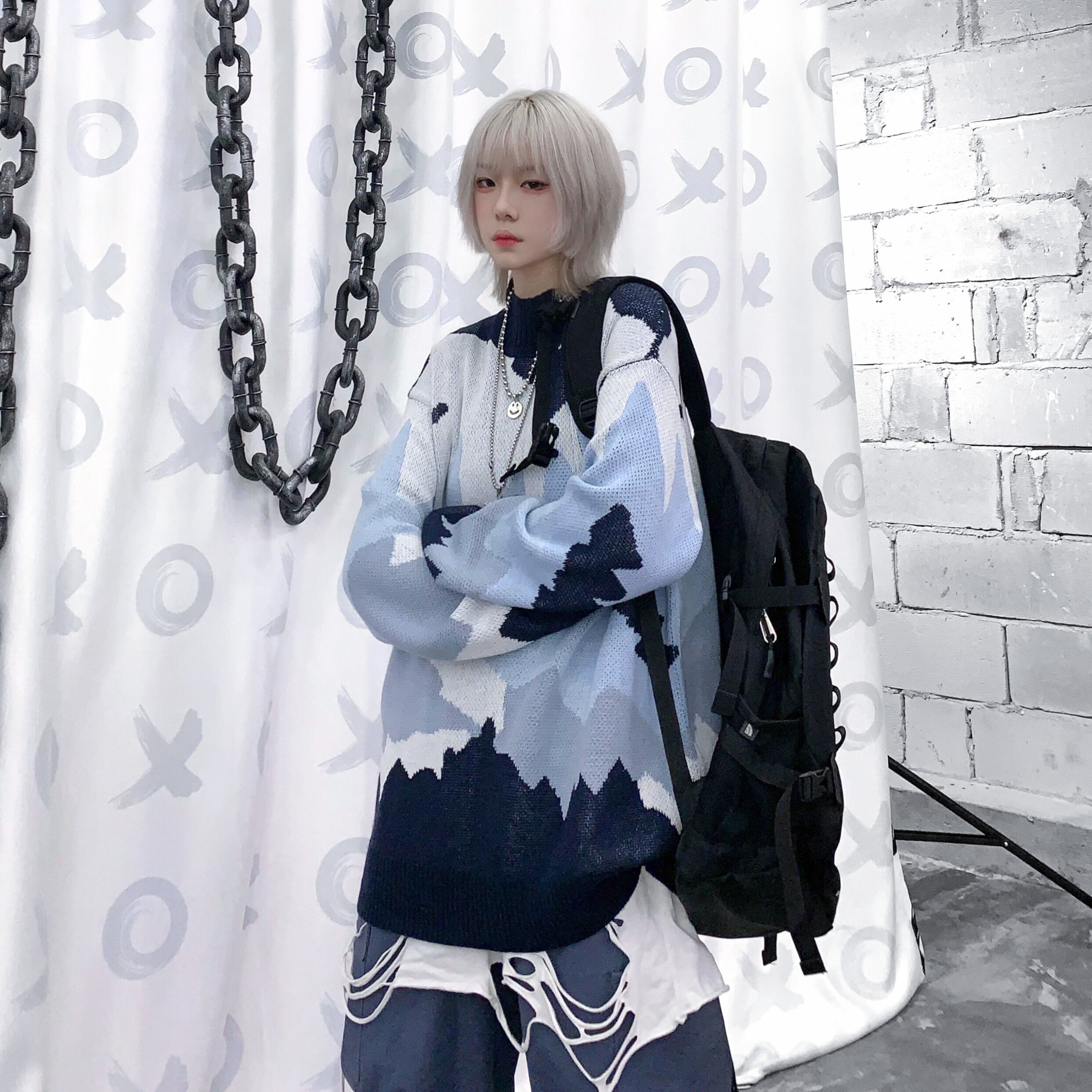 【送料無料】 pinksaviorクールカラー雪山デザインイラストセーター PSTB74690425897