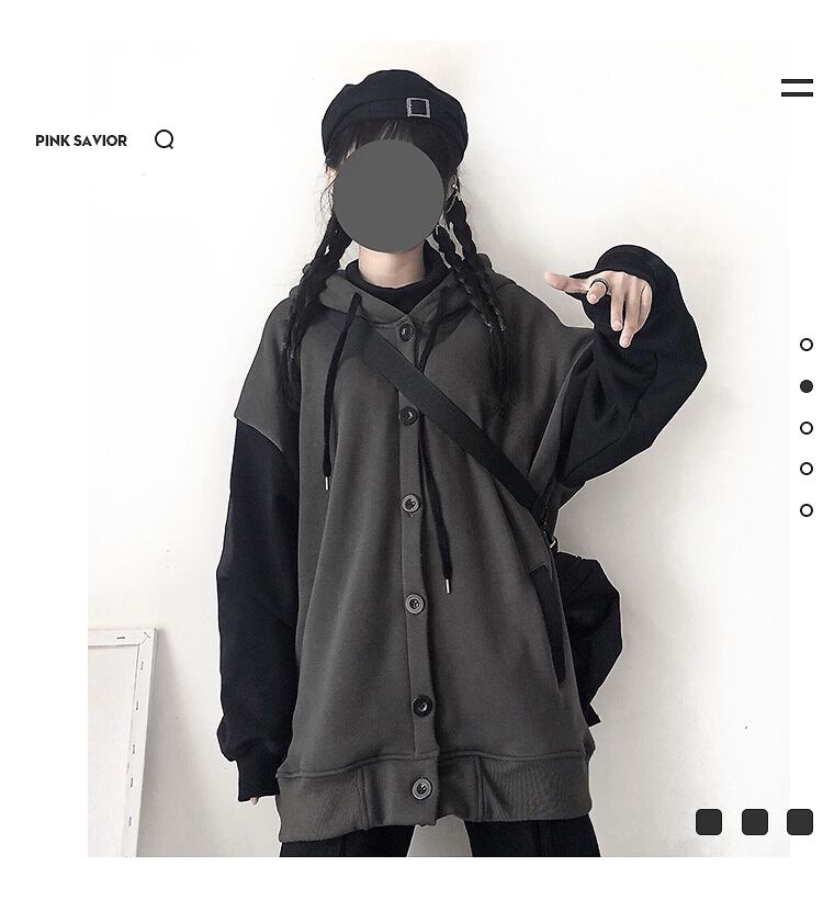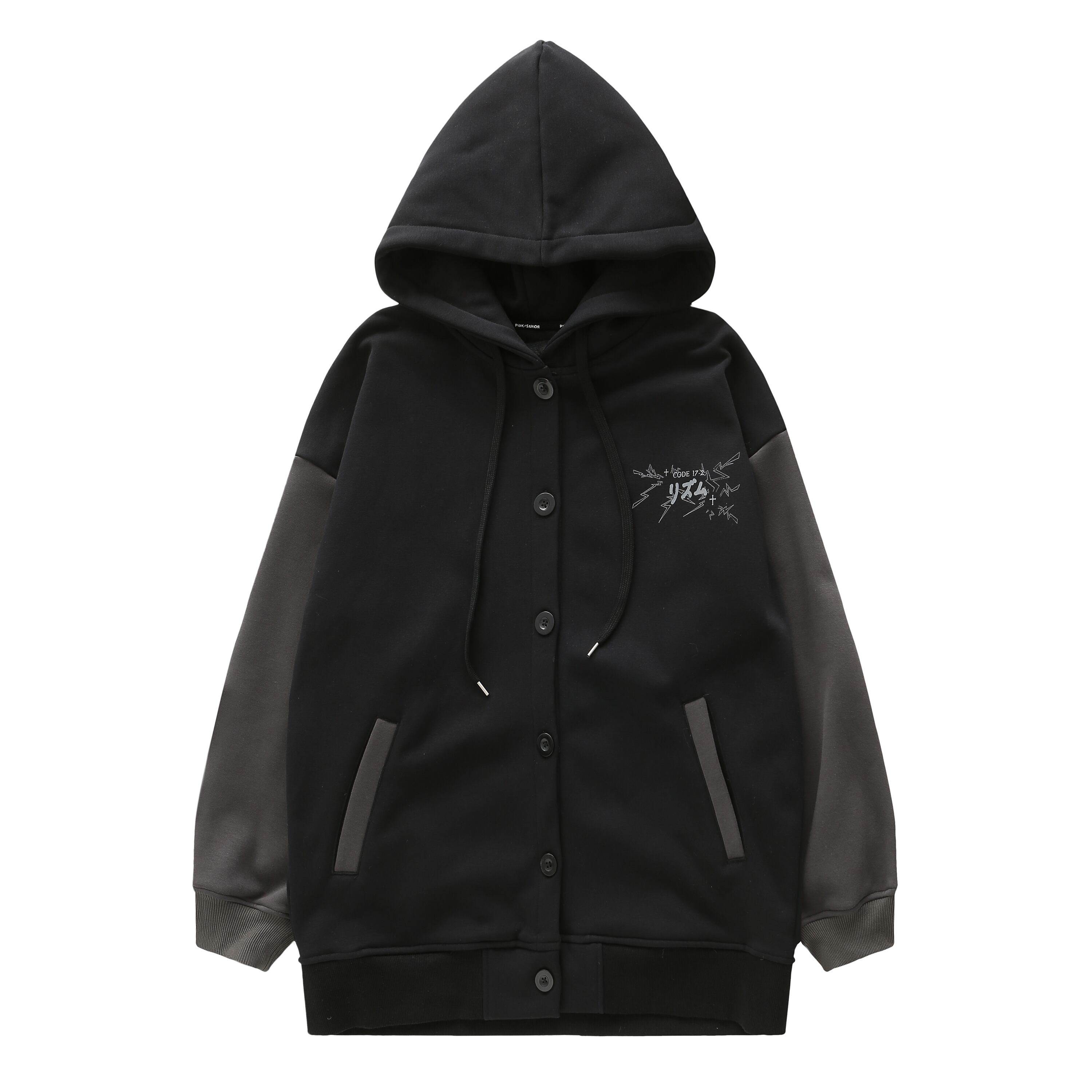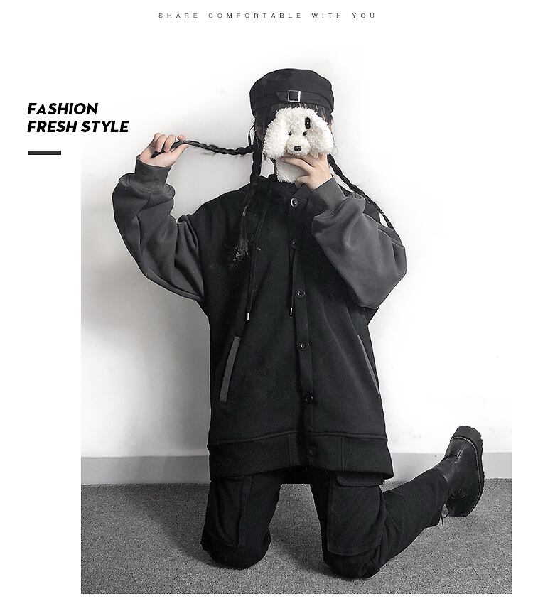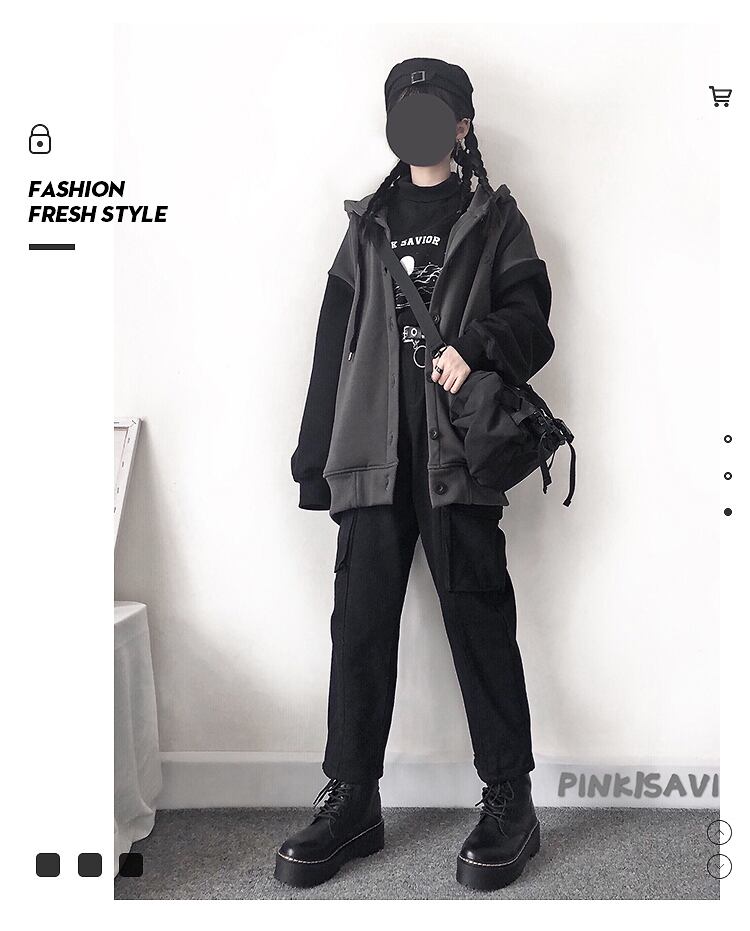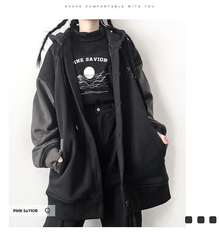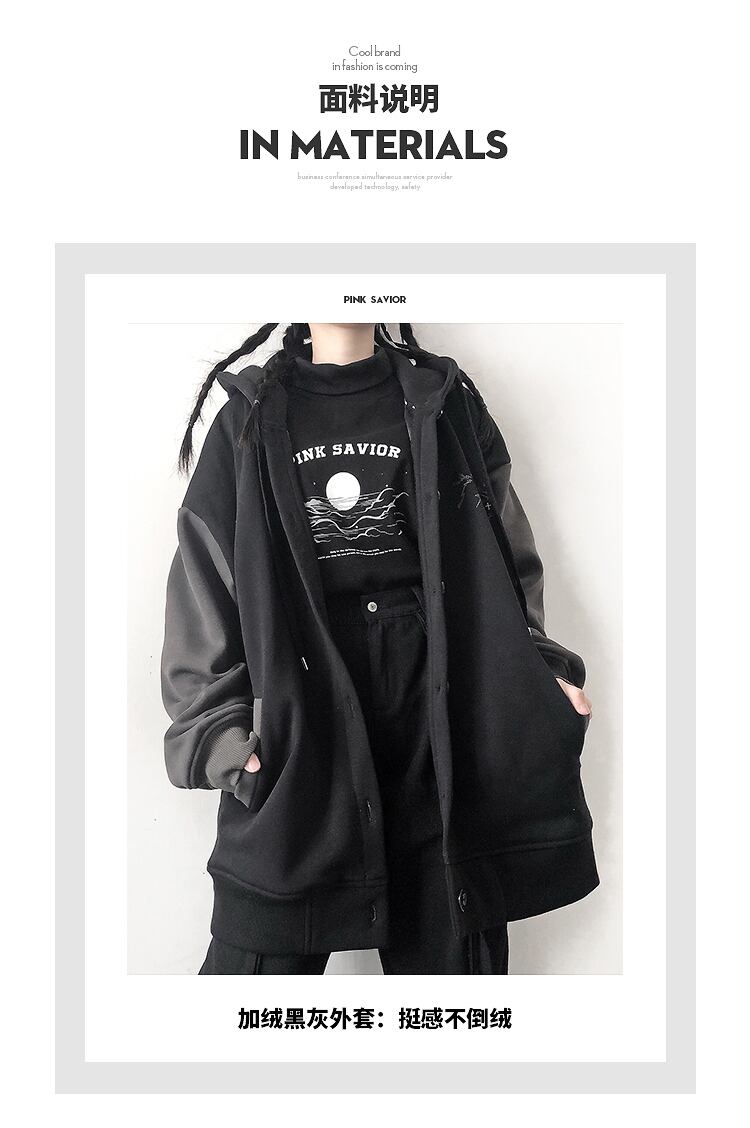 【送料無料】 pinksavior黒とグレーの高度な色の涼しい秋と冬の厚みに加えてベルベットのルーズフード付きジャケット ブラック オータム 秋物 ウィンター 冬物 PSTB58184104991