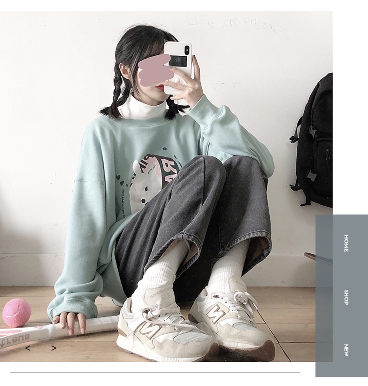 【送料無料】 pinksaviorレインボー反射ウサギプラスベルベット冬の暖かさダウンベルベットレジャー大学のセーターなし ウィンター 冬物 PSTB14749974903