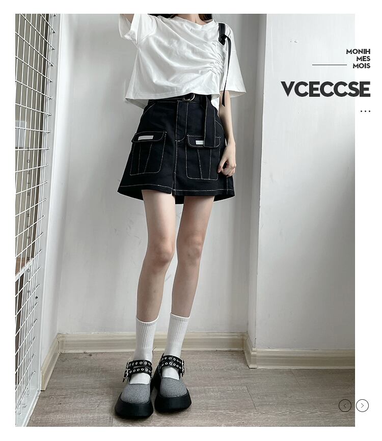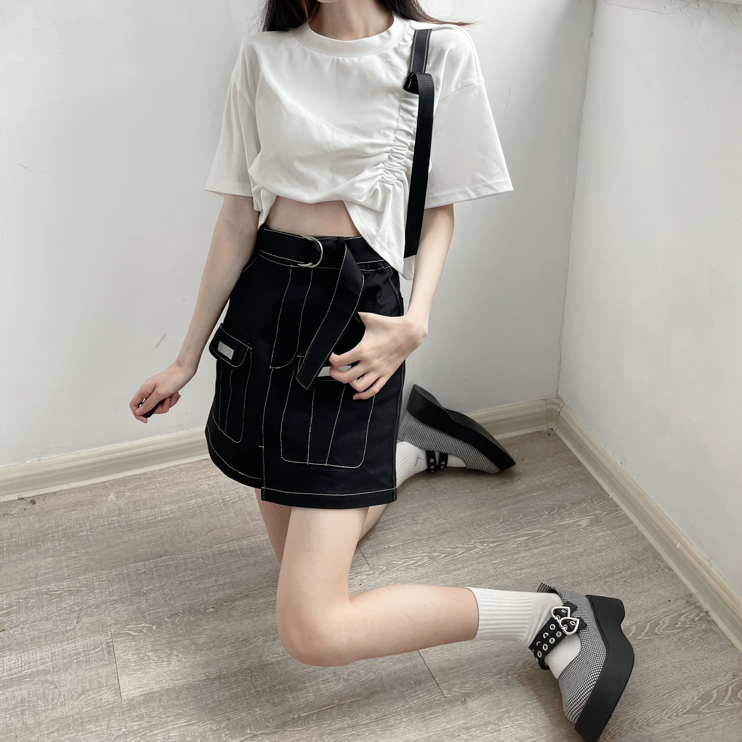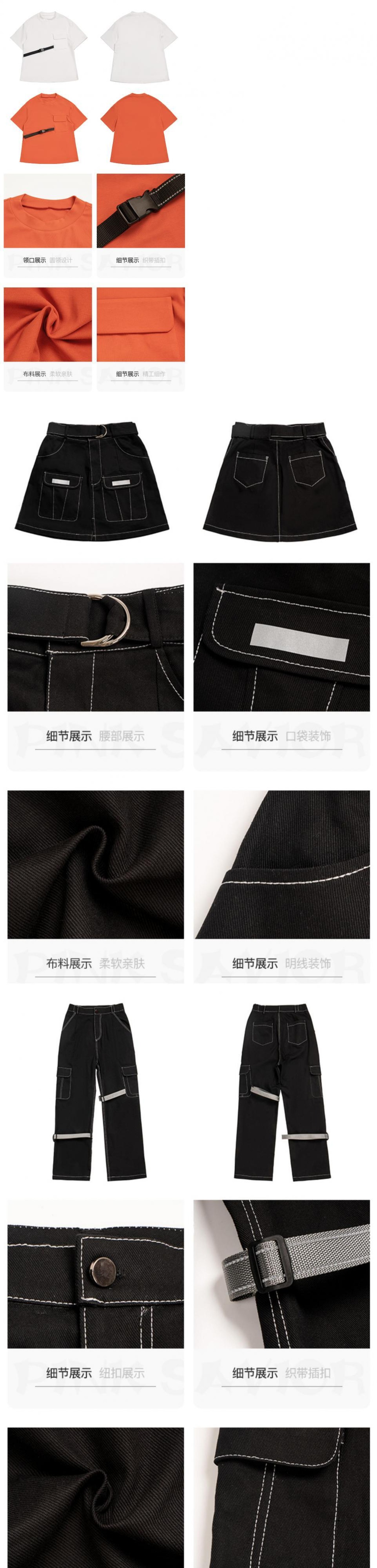 色:オレンジレギュラーT,オレンジショートT,ホワイトレギュラーT,ホワイトショートT,露出したラインの黒いスカート,オープンラインブラックパンツ