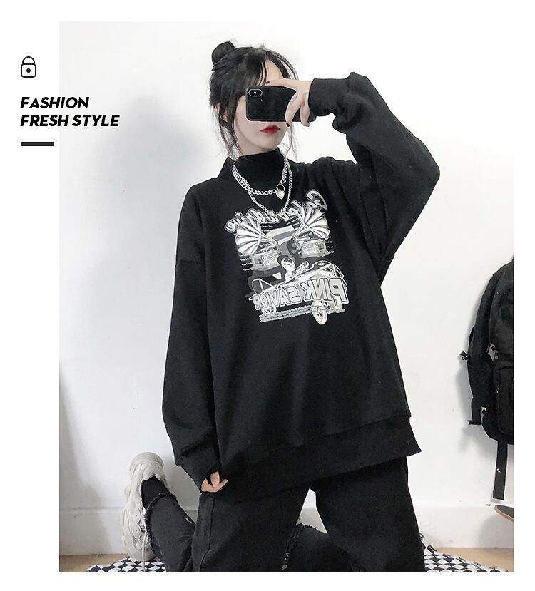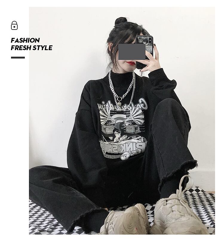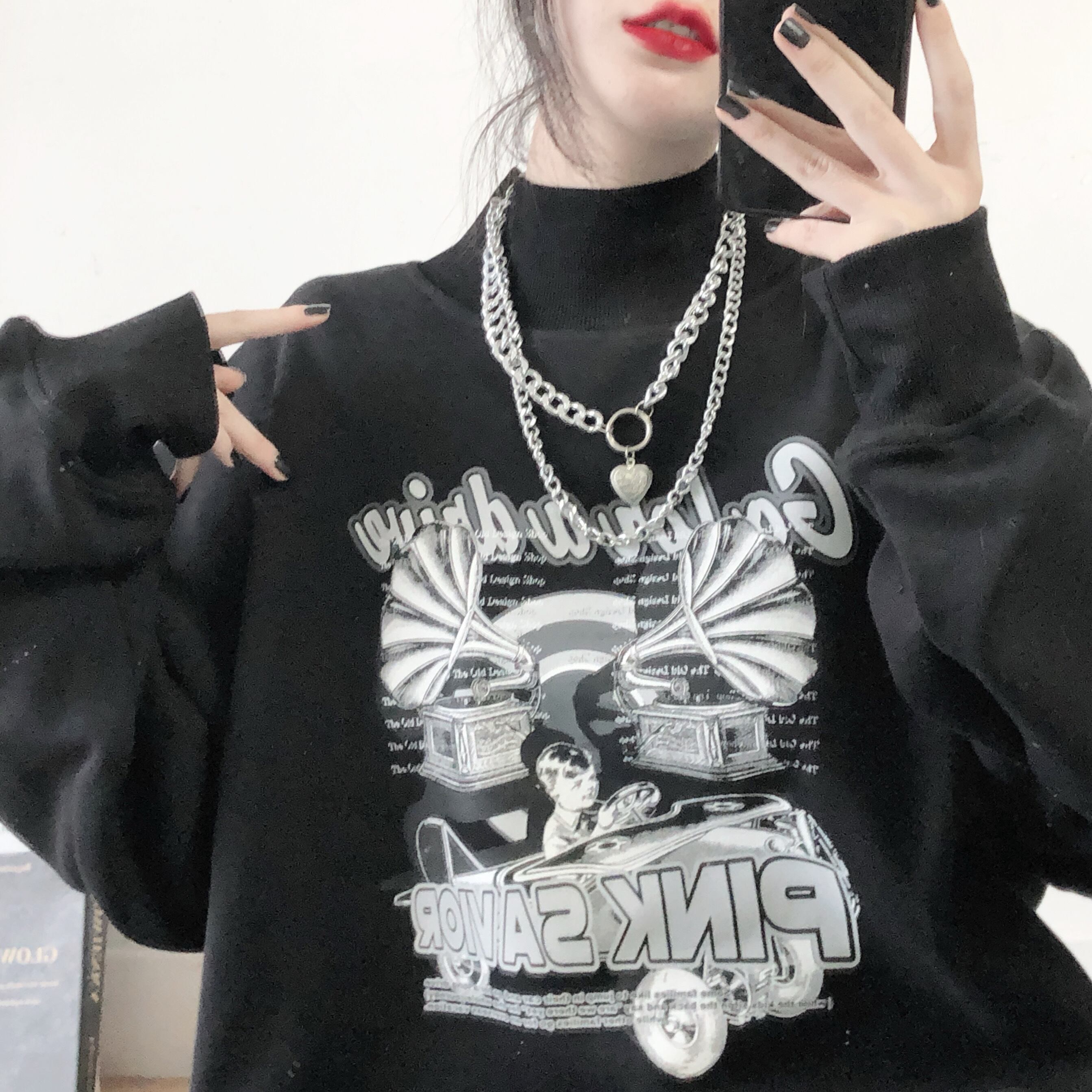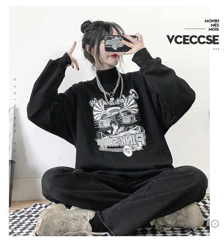 【送料無料】 pinksaviorオールマッチ着やすい小さなハイカラーとベルベットの冬のレトロなプリントは薄いイラストのセーターでした ウィンター 冬物 PSTB41942457616