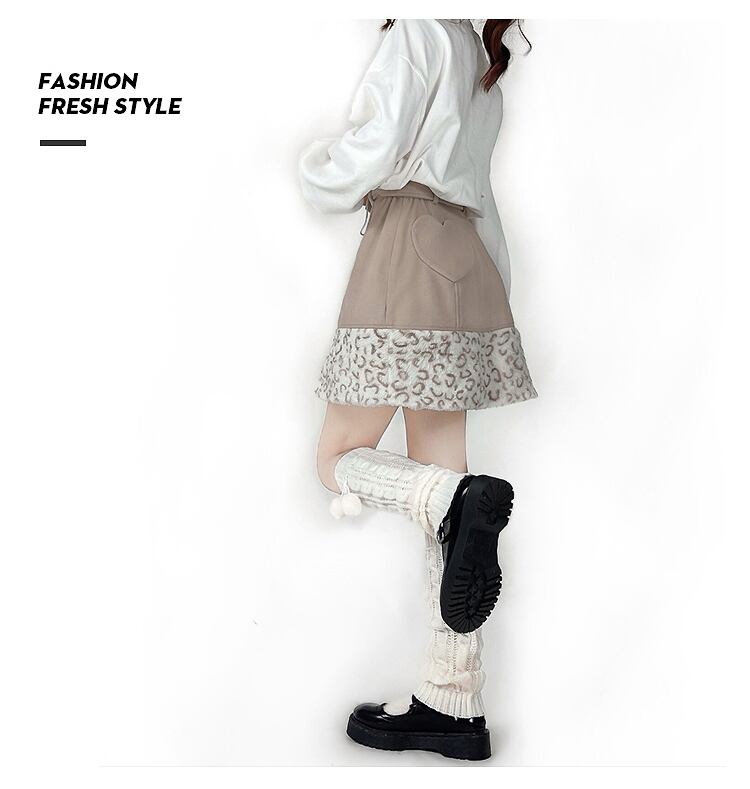 色:リバーシブルプルオーバージャケット,両面ジッパージャケット,レースサスペンダースカート,内側にヒョウのステッチ,ヒョウ柄スカート,このオプションは気にしないでください