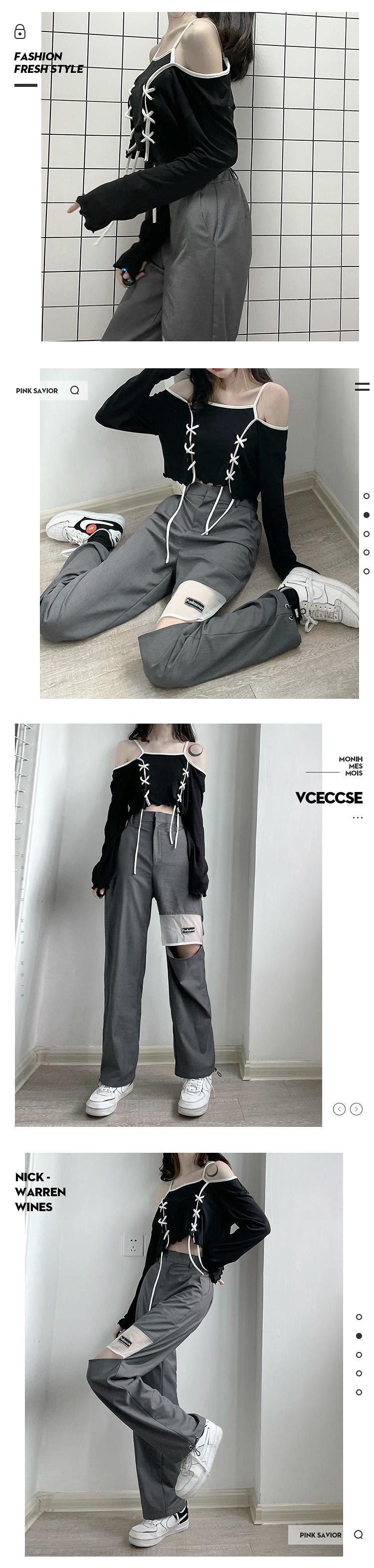 【送料無料】 pinksaviorシフォンステッチカジュアルな夏の女性ストレートハイウエストドレープパンツ ハイウェスト サマー 夏物 PSTB27908028047