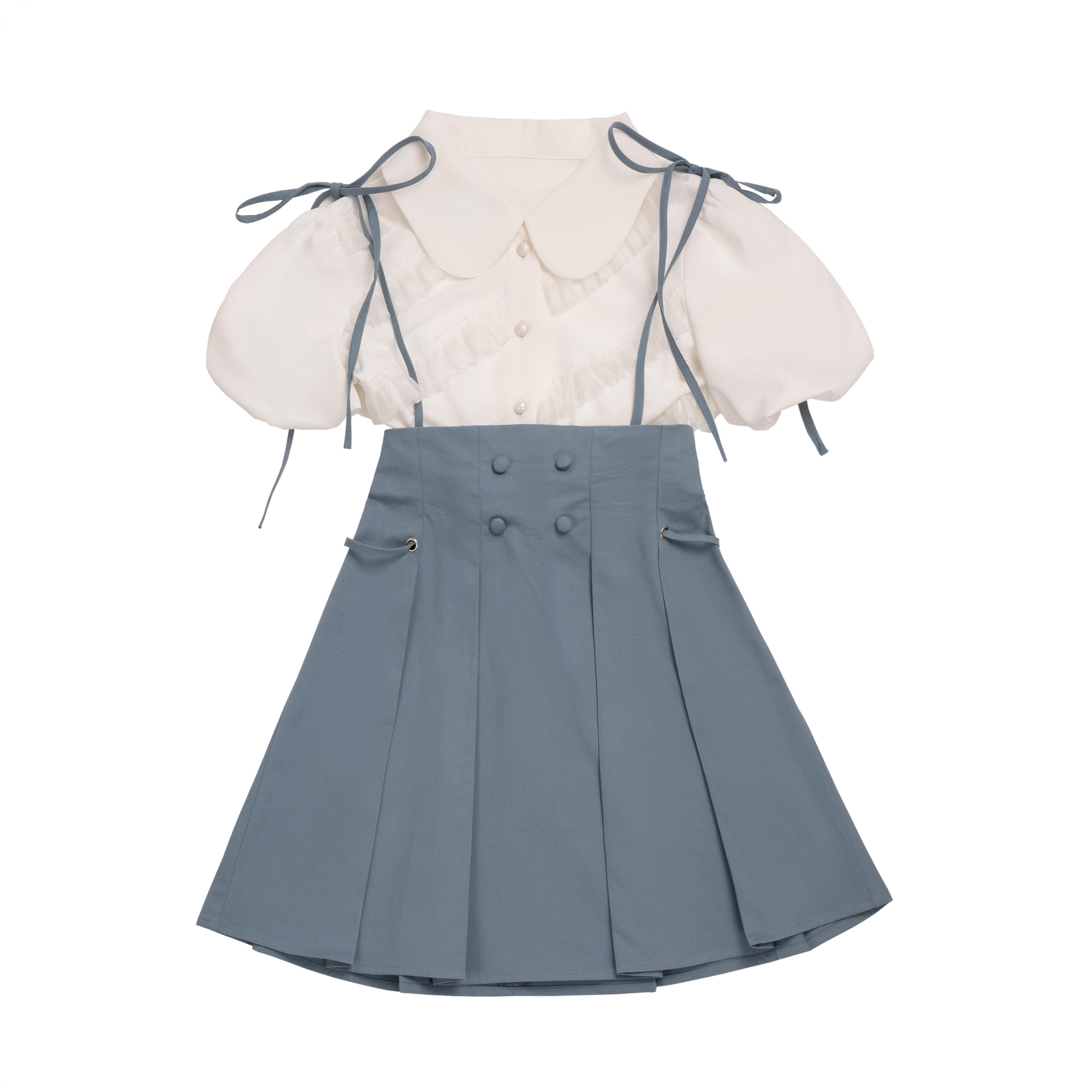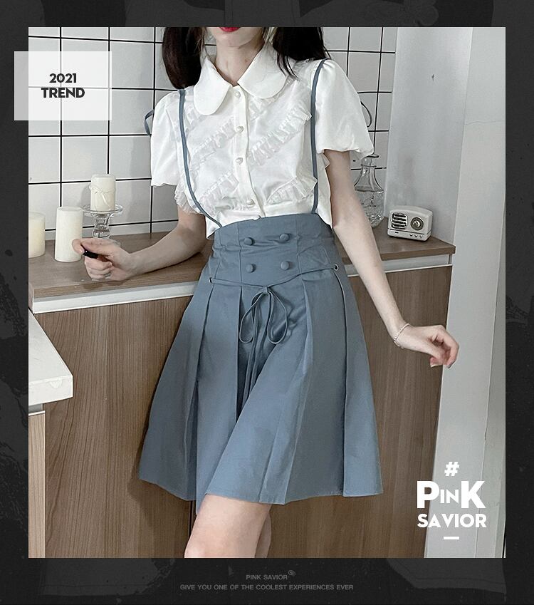 【送料無料】 pinksavior【当時の風鈴】レース飾りのパフスリーブデニムネクタイドレスシャツスーツ ピンク PSTB89422824606