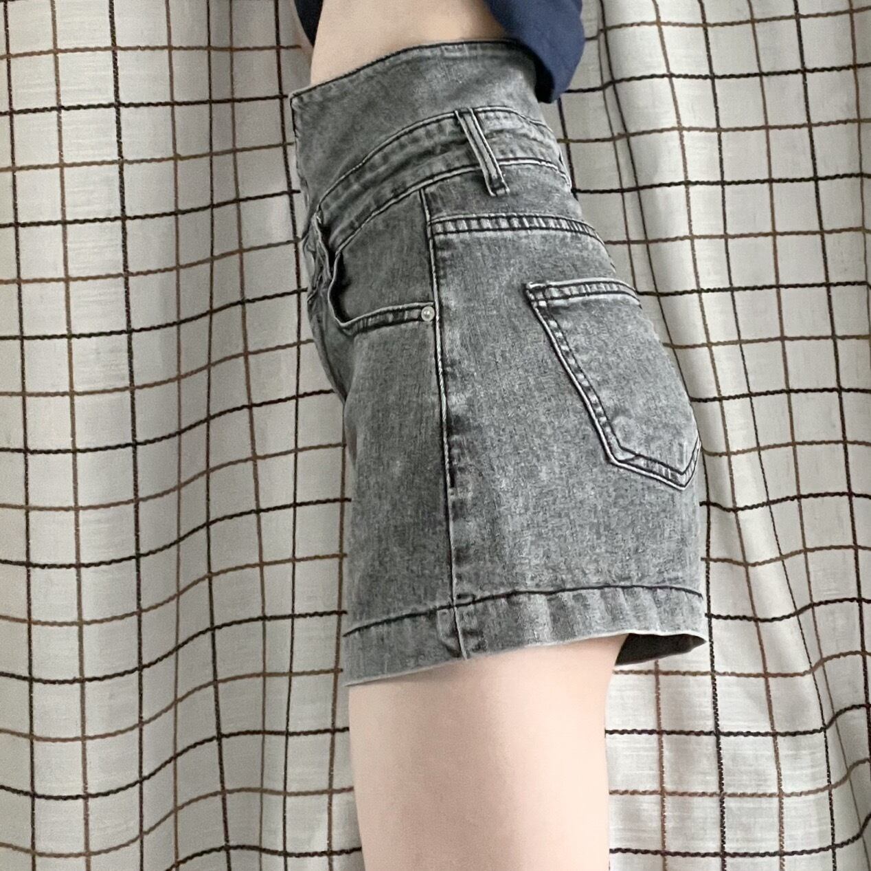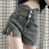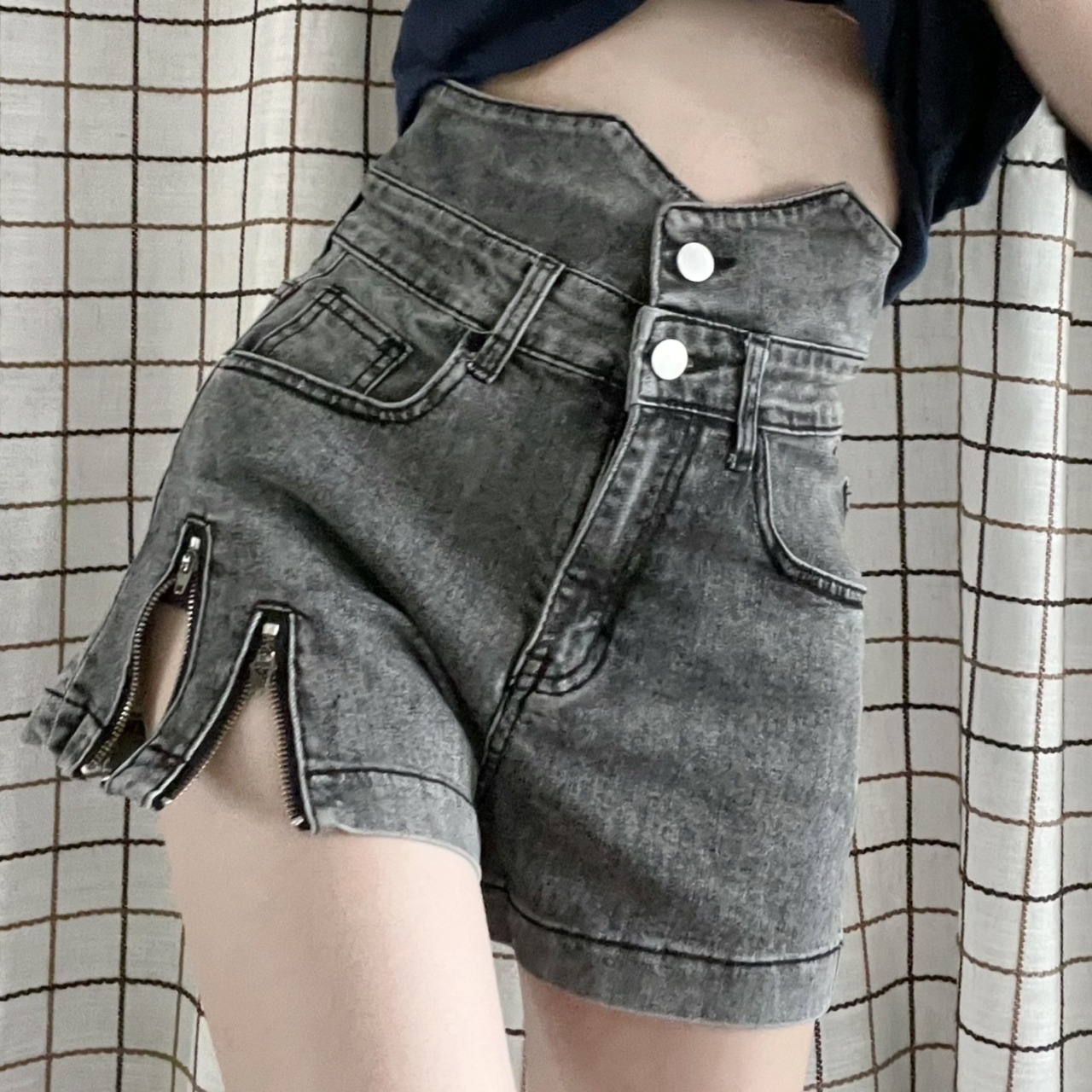 【送料無料】 pinksaviorサマーハイウエストジッパーパンツ、グレーとブルーの2色デイリーマッチングデニムショーツ レッド 夏物 ブルマー PSTB90613620442