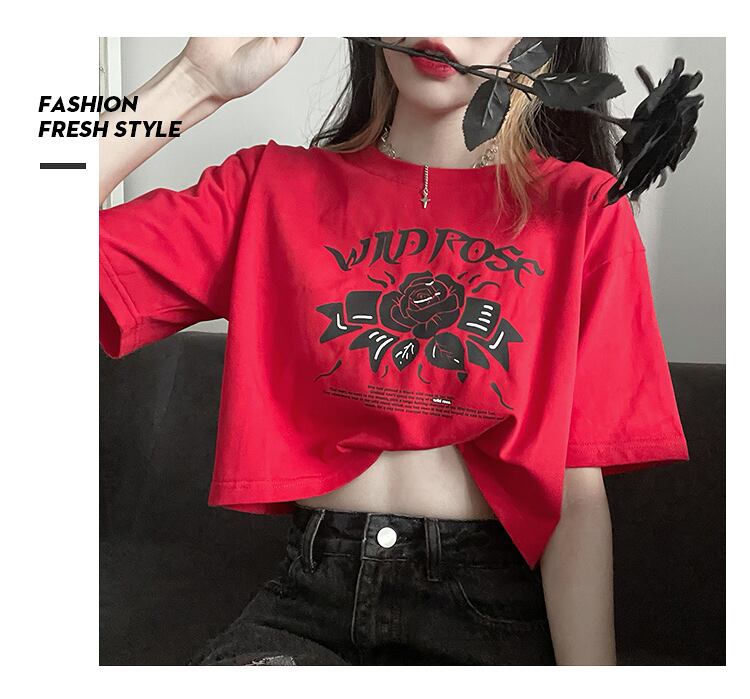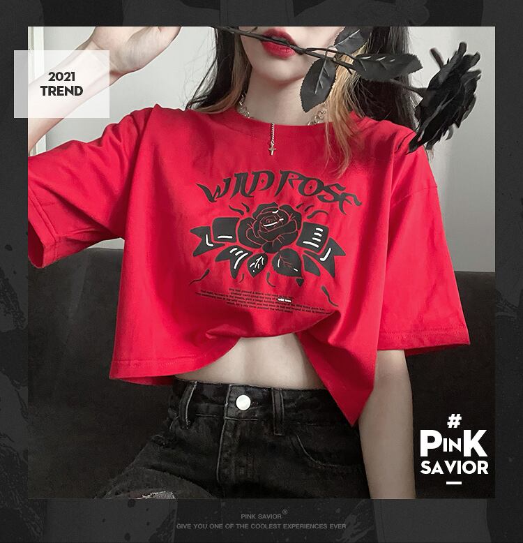 【送料無料】 pinksaviorスペシャルホワイト&レッドショートローズプリントコットンT PSTB14896159442